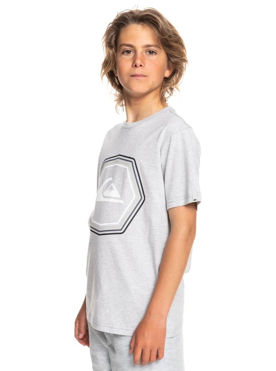 Esta camiseta de corte normal, clásico y cómodo, cuenta con cuello redondo con punto de canalé, manga corta y una ilustración artística con el logo de Quiksilver estampado en el pecho.