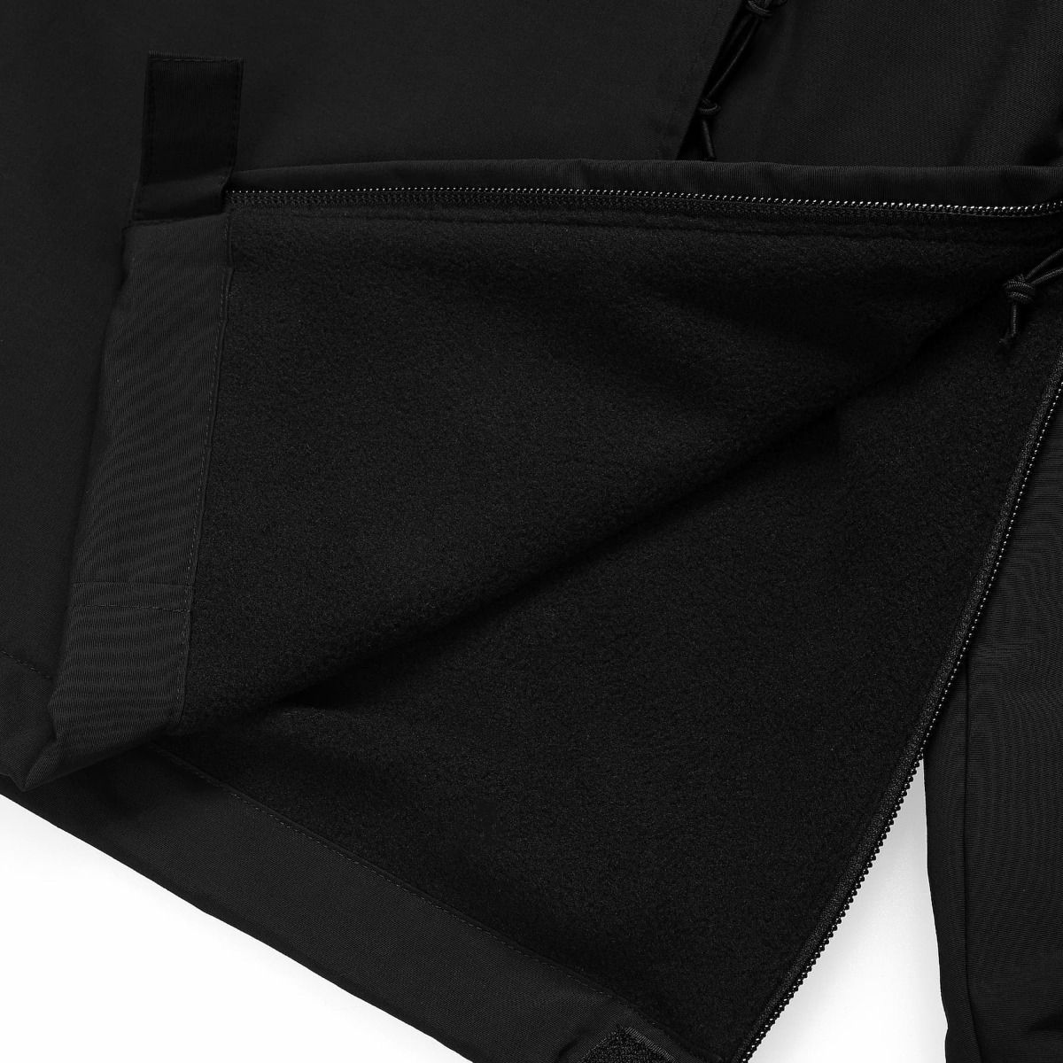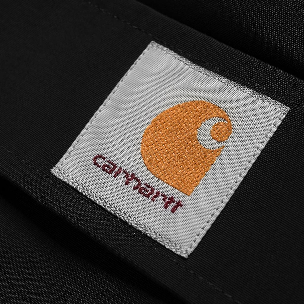 La chaqueta cortavientos Nimbus Pullover (Winter) negra para hombre tiene una etiqueta de garantía Carhartt Work In Progress en el cuello interior.