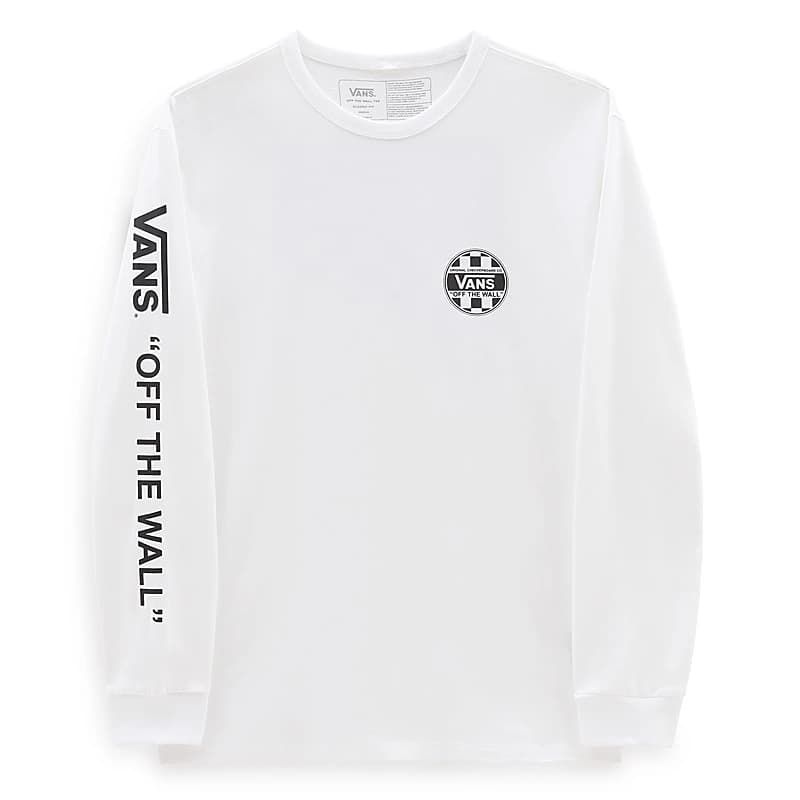 La camiseta de manga larga Off The Wall Check Graphic blanca para hombre tiene una etiqueta de garantía Vans® tejida en el lateral.