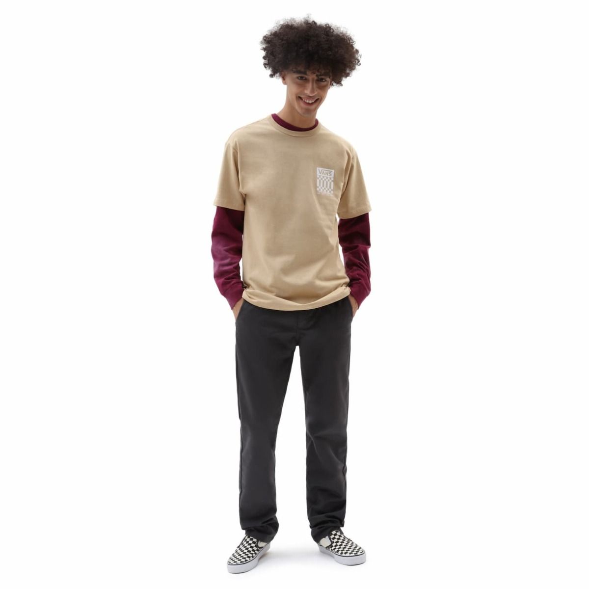 La camiseta de manga corta para hombre Off The Wall Check Graphic en marrón (Taos Taupe) de Vans ha sido confeccionada con algodón 100% Supima e hilado Sturdy Spun para lograr mayor durabilidad, a la vez que minimiza el encogimiento.
