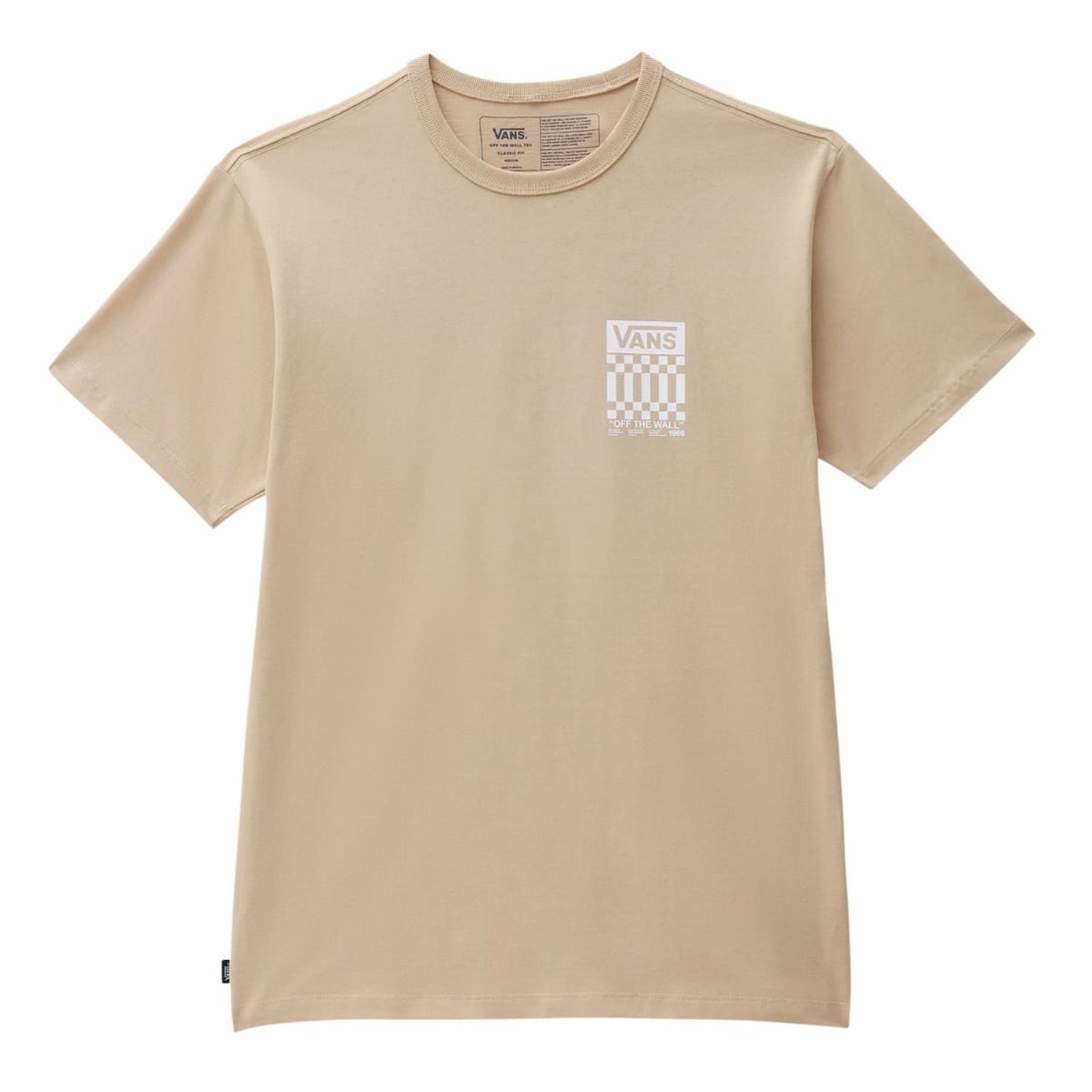 La camiseta de manga corta Off The Wall Check Graphic marrón para hombre tiene una etiqueta de garantía Vans® tejida en el lateral.