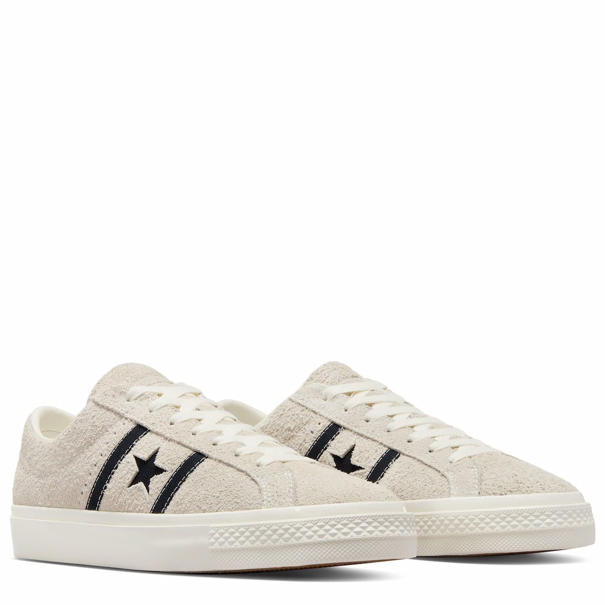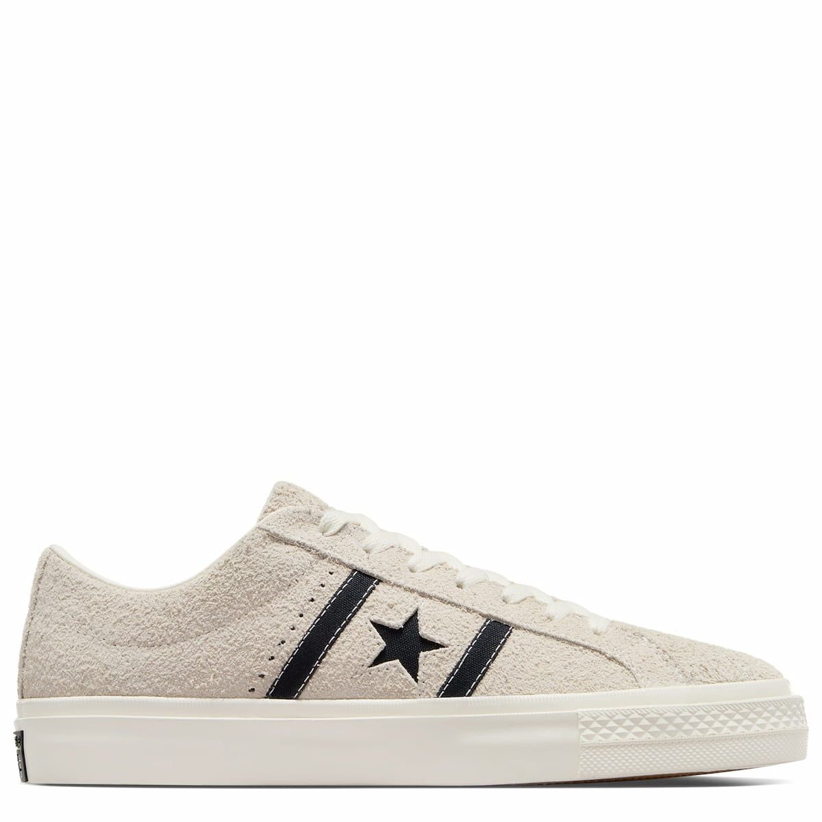 Las deportivas de skate para hombre CONS One Star Academy Pro Suede en tono beige y negro (Egret-Black-Egret) de Converse están confeccionadas con ante vintage y caucho.