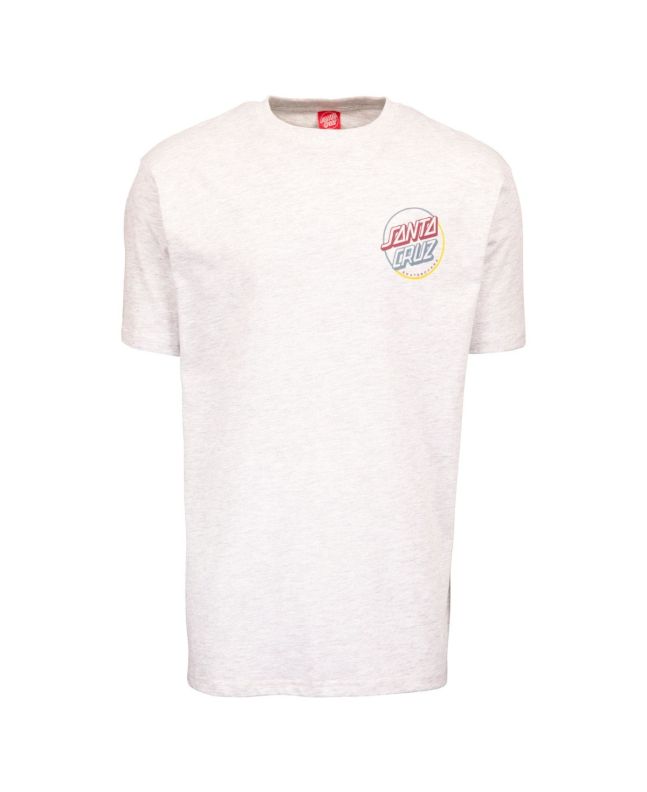 Esta camiseta de ajuste regular cuenta con cuello redondo, manga corta y el logo de Santa Cruz Skateboards multicolor impreso en el lateral izquierdo del pecho y la espalda.