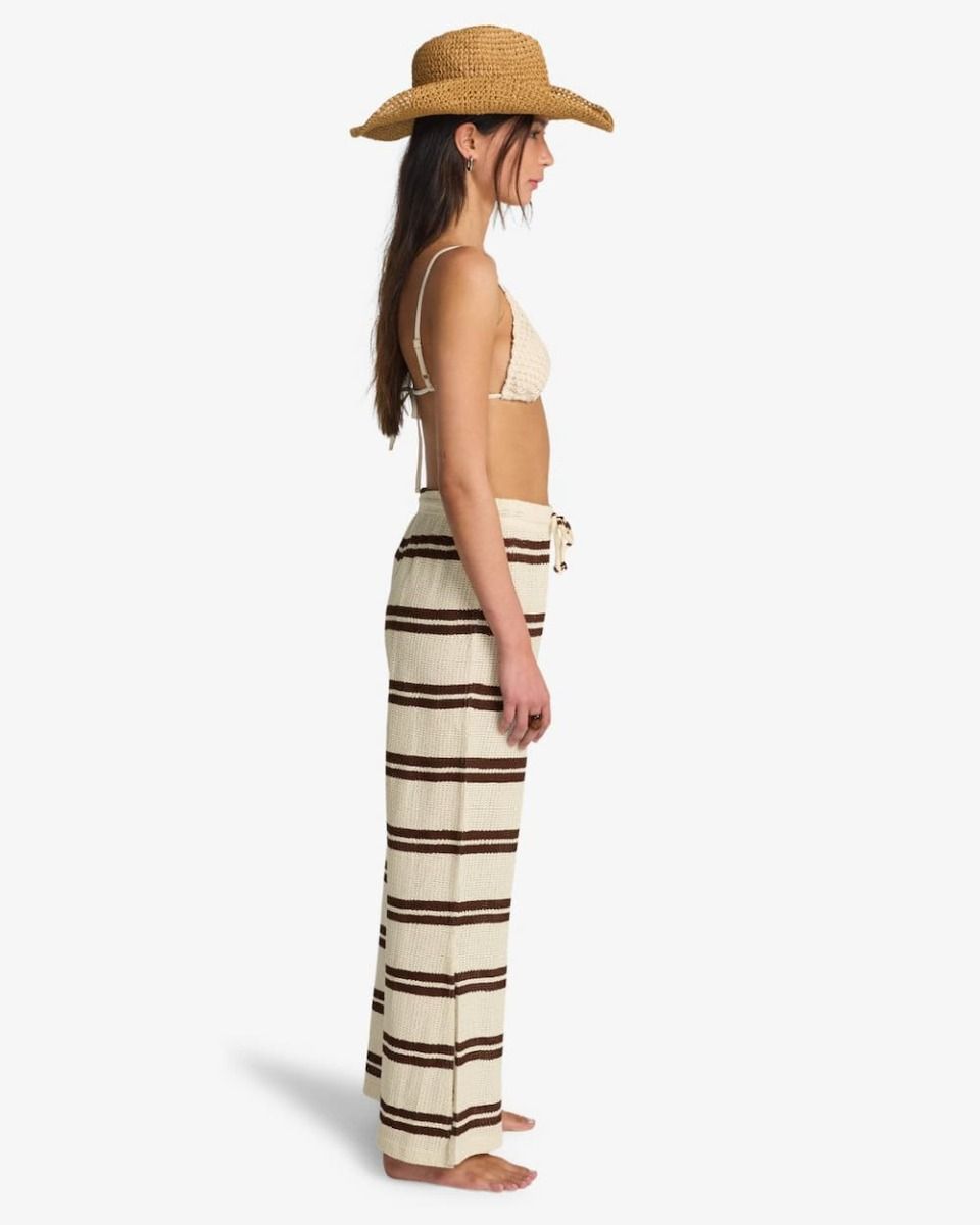 Pantalón playero Billabong Hot Stripe para mujer en ganchillo de algodón 100% con corte relajado extra grande en color Teak.