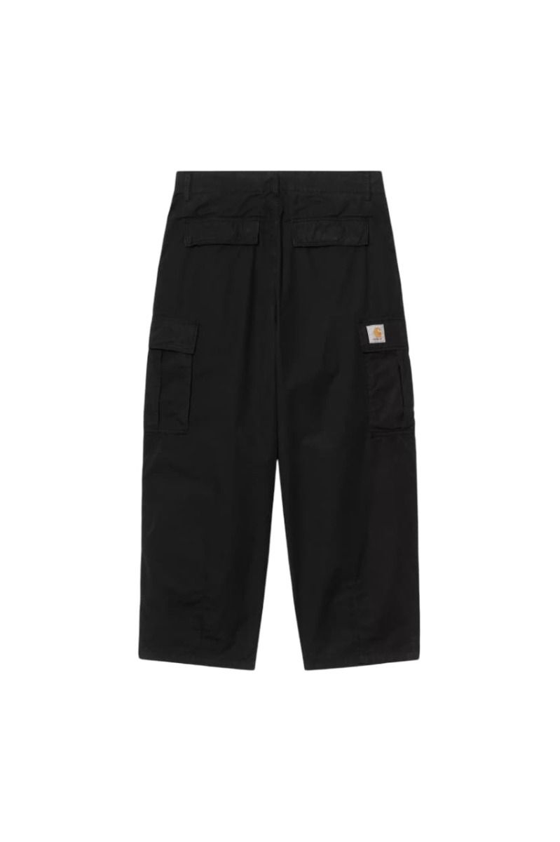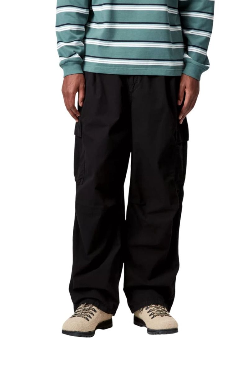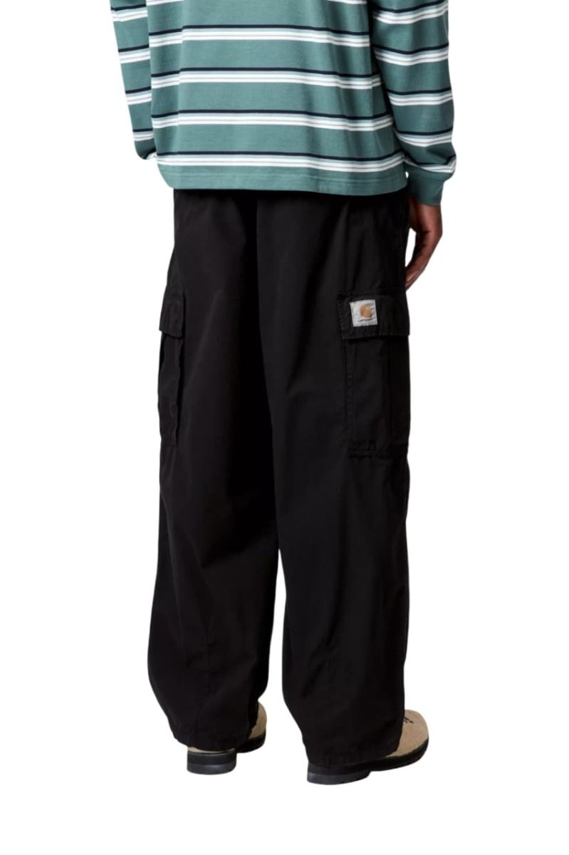 Pantalón cargo Carhartt WIP Cole negro Garment Dyed en popelina de algodón con corte relaxed y diseño técnico urbano.