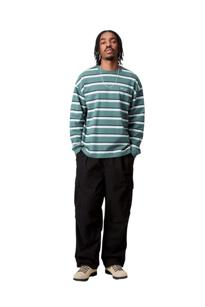 "El Cole Cargo es una de esas piezas que elevan el concepto cargo tradicional. Nos gusta especialmente el acabado Garment Dyed porque aporta textura y personalidad al negro clásico. El corte relaxed tiene presencia, pero sigue siendo fácil de combinar. Es una opción sólida si buscas un pantalón cargo Carhartt WIP técnico, cómodo y con identidad urbana clara".