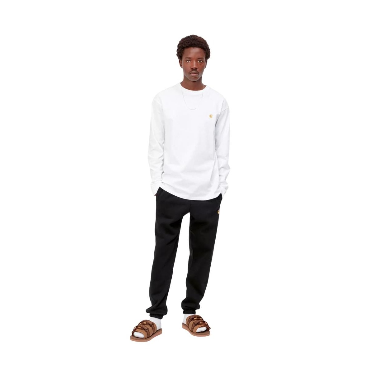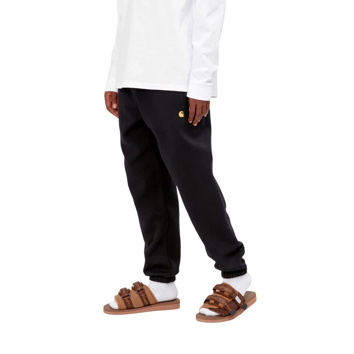 Pantalón de chándal Carhartt WIP Chase Sweat en color negro con el logo dorado para hombre