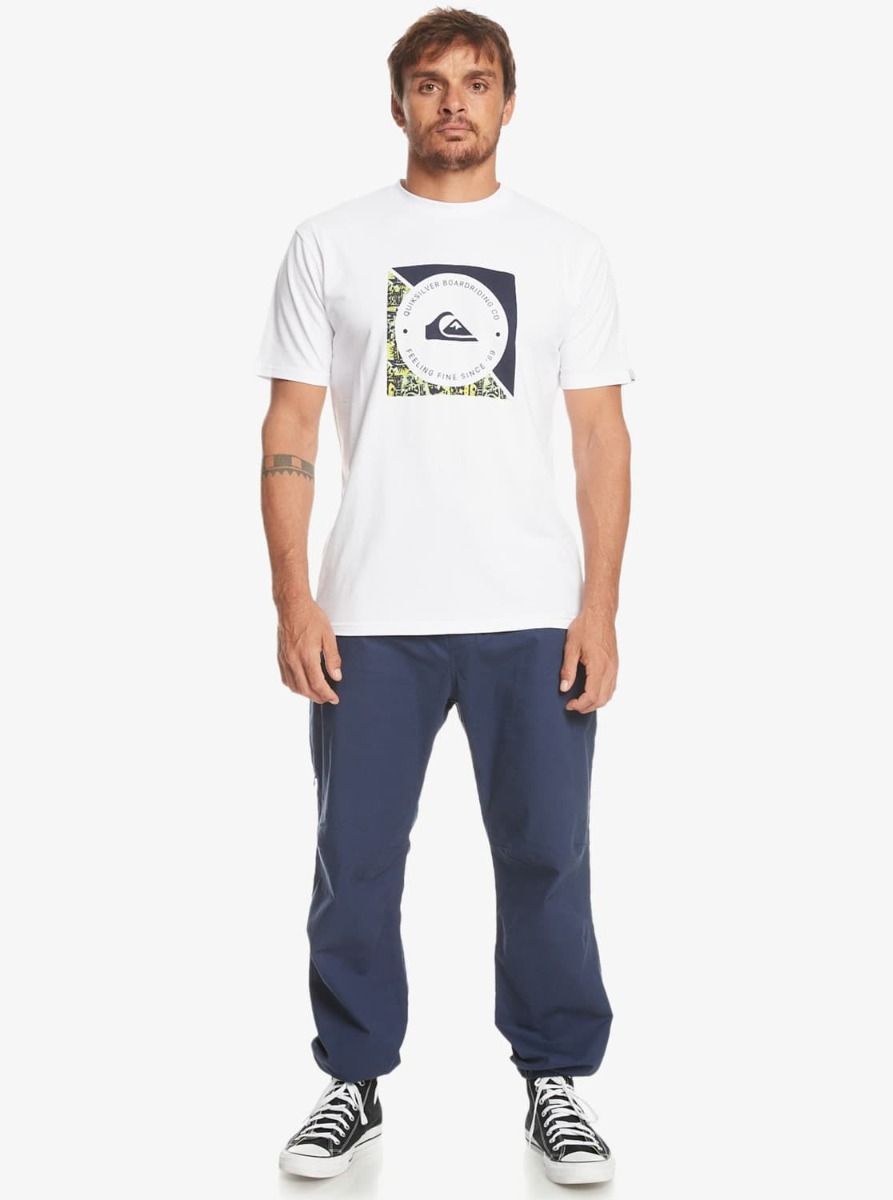 Estos pantalones jogger de ajuste elástico tipo chándal cuentan con cintura y bajos elásticos, cordón de ajuste, bolsillos laterales, un bolsillo lateral oculto, bolsillo posterior de ojal y una etiqueta con el logo de Quiksilver tejida en el bolsillo izquierdo.