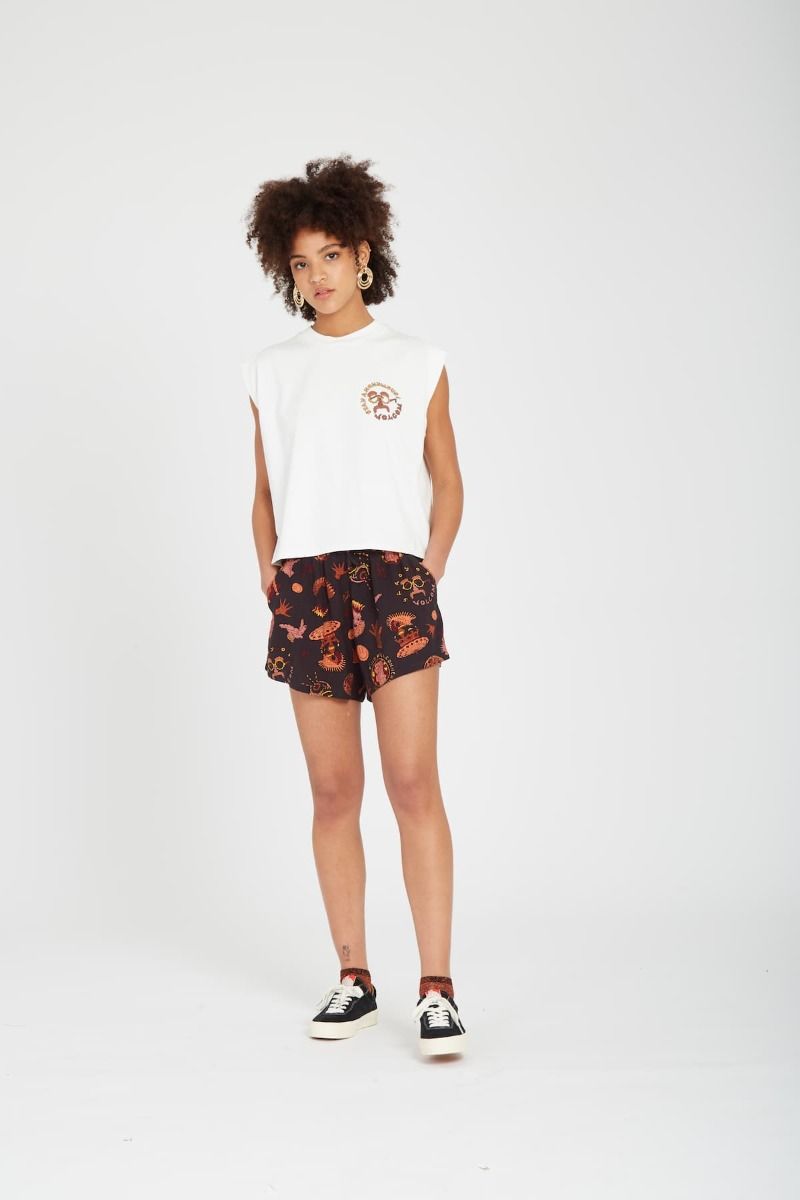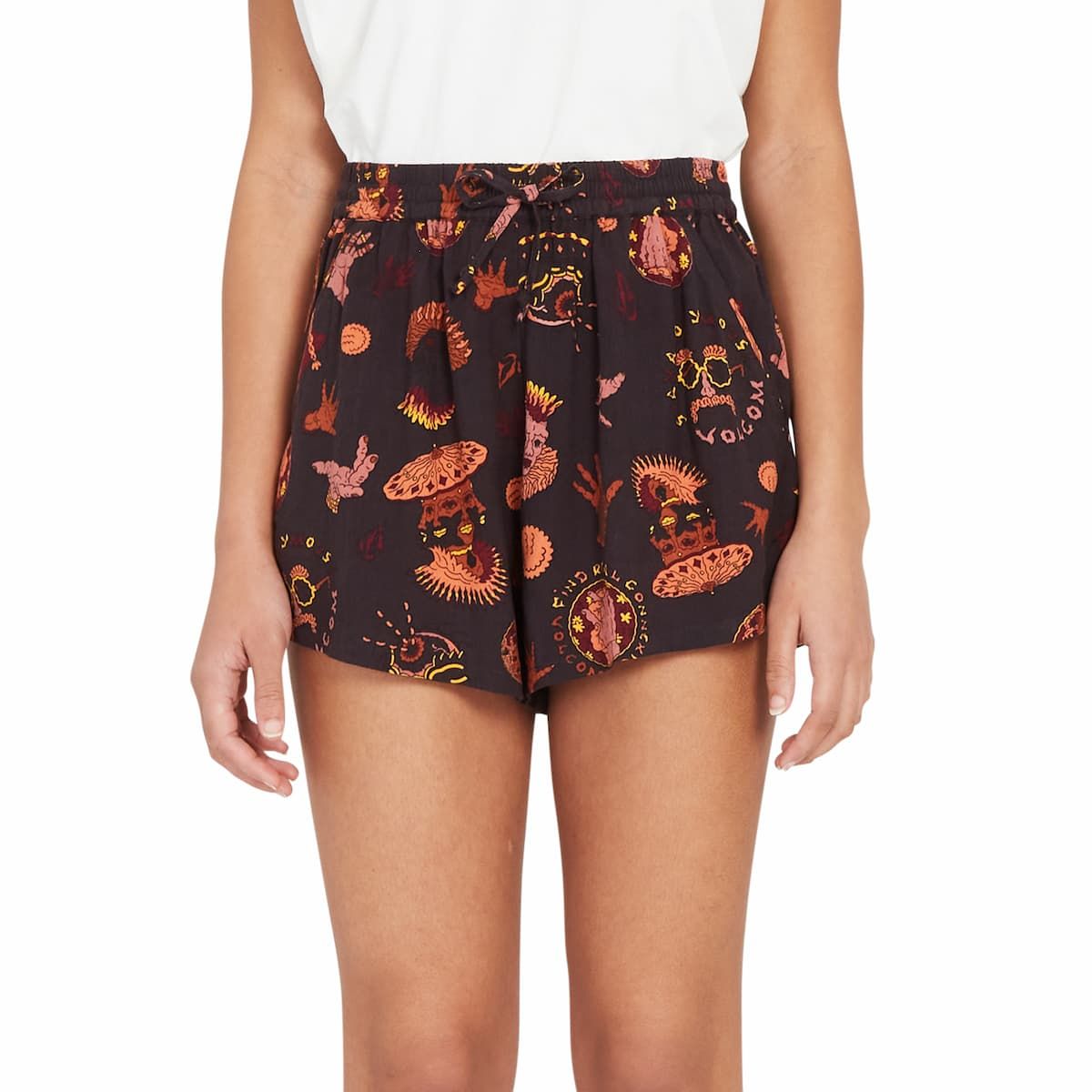 El pantalón corto para mujer Connected Minds Short en negro con detalles estampados (Black) de Volcom está confeccionado con 100% FSC Viscosa.