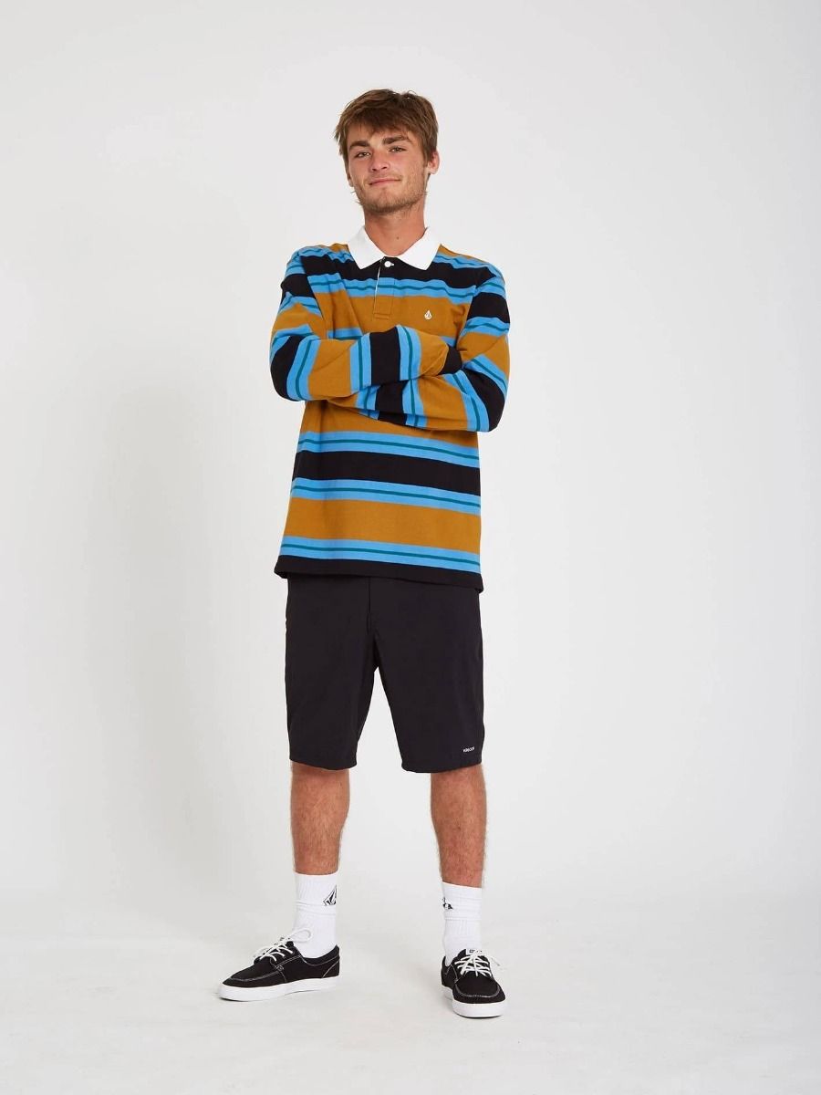 Este pantalón corto impermeable de corte moderno y 51 cm (20”) de largo, cuenta con bolsillos frontales inspirados en los de los monos de trabajo con bolsas de malla, panel asimétrico en la costura lateral y etiquetas características con el logo de Volcom Stone tejidas.