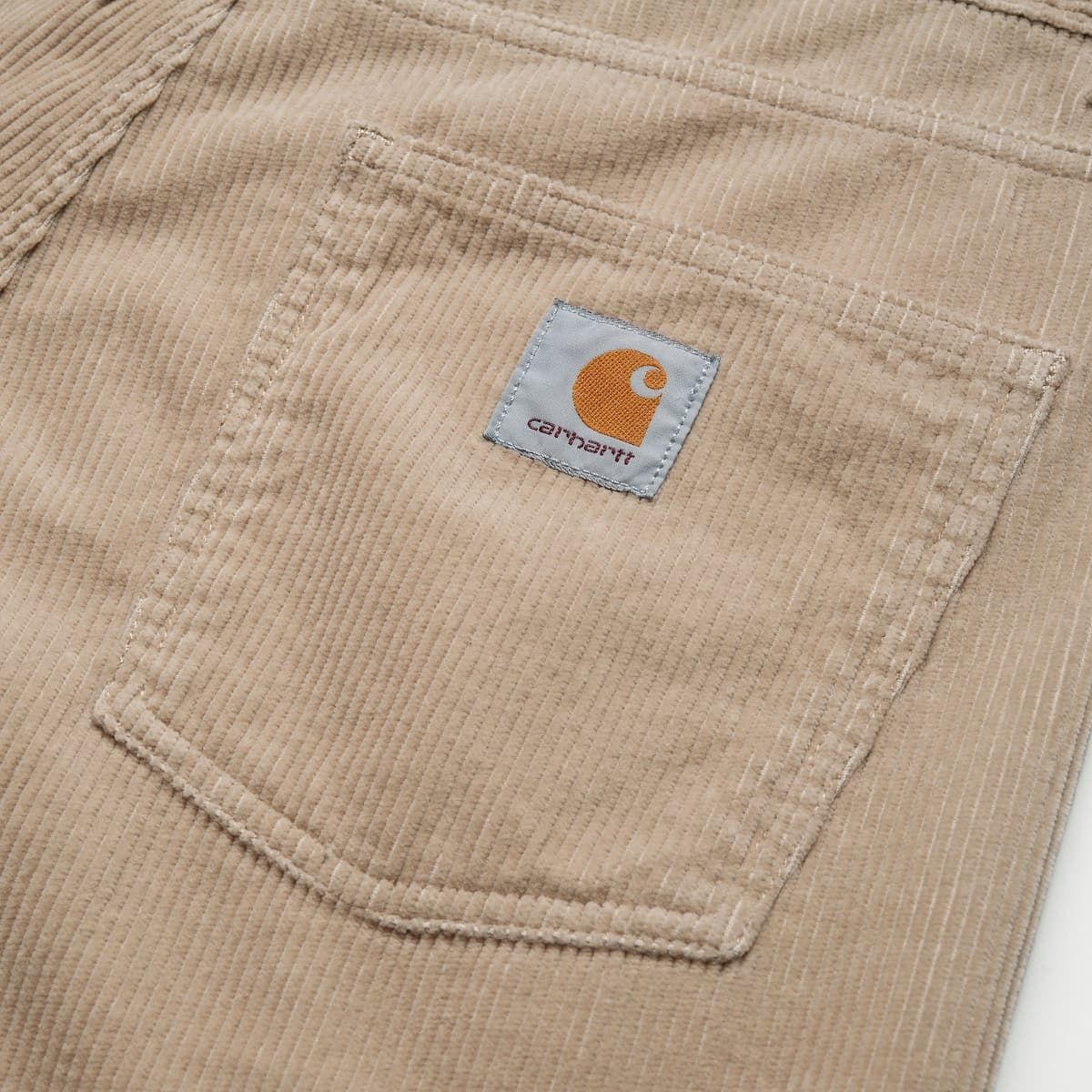 Estos clásicos pantalones de pana con 5 bolsillos cuentan con corte relajado ajustado, tiro regular, bragueta de botones, canesú trasero, remaches metálicos y/o costuras reforzadas en zonas de mayor tensión y una etiqueta cuadrada con el logo de Carhartt tejida en el bolsillo posterior derecho.