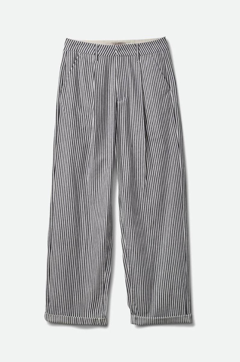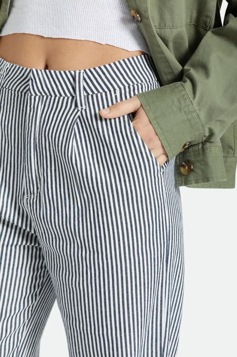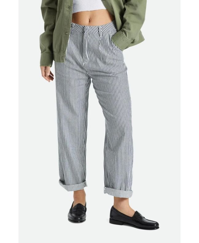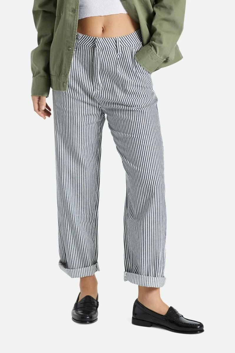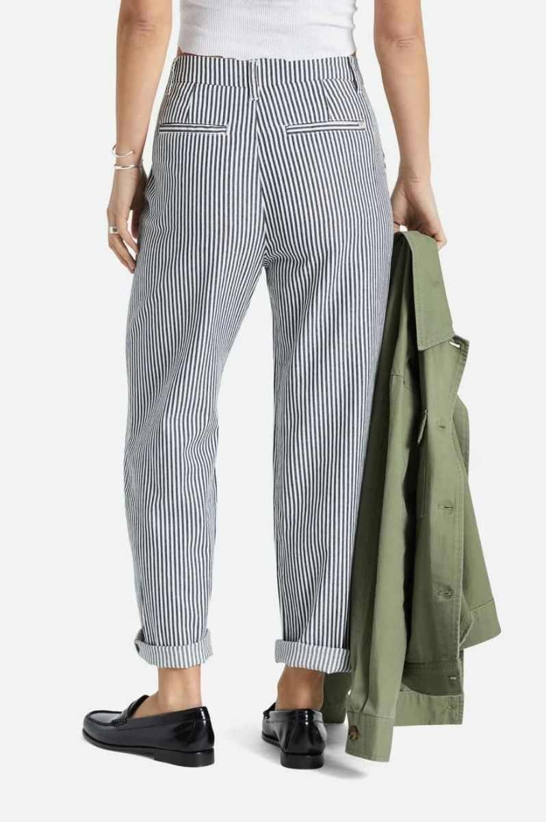 Los pantalones para mujer Victory Trouser Pant en azul marino a rayas (Washed Navy) de Brixton están confeccionados con 100% sarga de algodón cepillado.