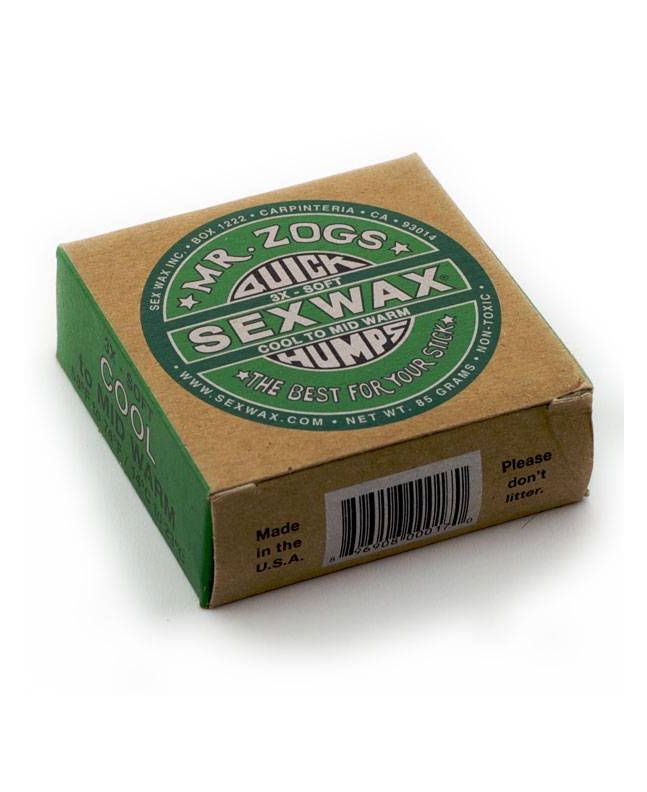 La relación entre el color de la etiqueta de las parafinas Sex Wax Quick Humps y cada fórmula de sus ceras sigue siendo la misma: el color Green de esta cera para tablas de surf indica que es apropiada para aguas templadas entre 14-23º.