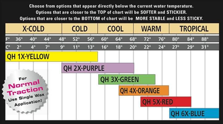 Consulta la tabla de temperaturas en esta imagen y elige la Sex Wax Quick Humps que más se adapte a tus baños. Si necesitas ayuda, no dudes en ponerte en contacto con nuestro equipo.