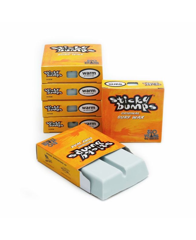 Puedes comprar la parafina para tablas de surf y bodyboards Sticky Bumps Original Warm Wax en pastillas de 85g.
