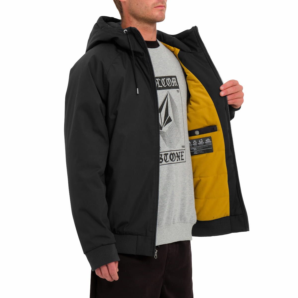 Esta parka gruesa en color negro de corte normal y largo hasta la cintura, cuenta con revestimiento resistente al agua de 10000mm con acabado Teflon EcoElite™ DWR sin PFCs, interior forrado de tejido de punto de poliéster cepillado, relleno de fibras de poliéster reciclado Repreve™ Polyfill, capucha ajustable mediante cordón, cuello alto, cierre frontal de cremallera completa, puños y dobladillo inferior elásticos, bolsillos laterales con interior de forro de punto cepillado, un bolsillo interior, bordado Stone en contraste en el lado izquierdo del pecho y una etiqueta Volcom Flag tejida en el bolsillo derecho.