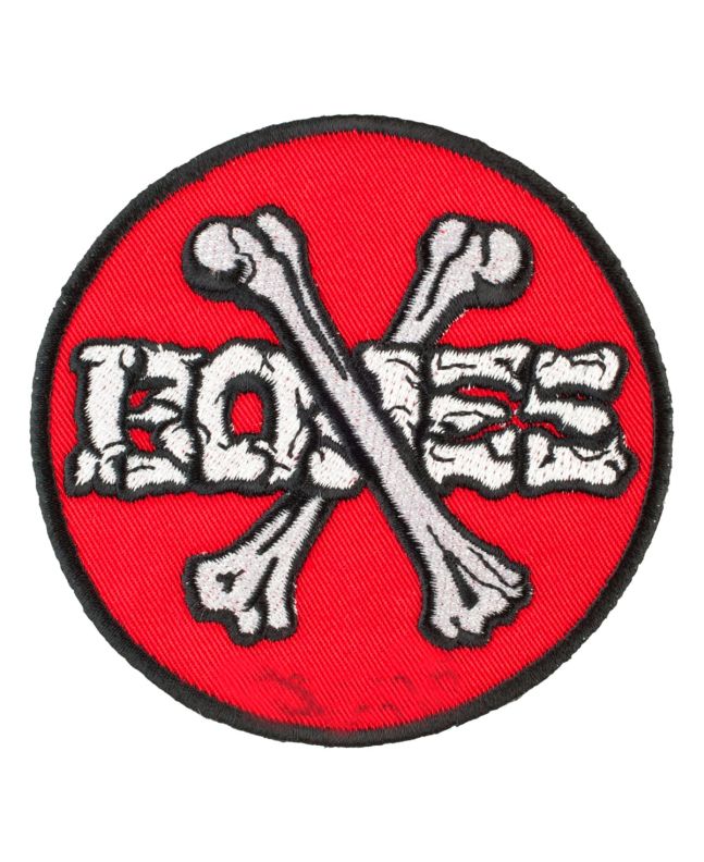 El parche Cross Bones Patch 3.5" en color rojo (Red) de Powell Peralta presenta forma redonda y el logo "Cross Bones" bordado.