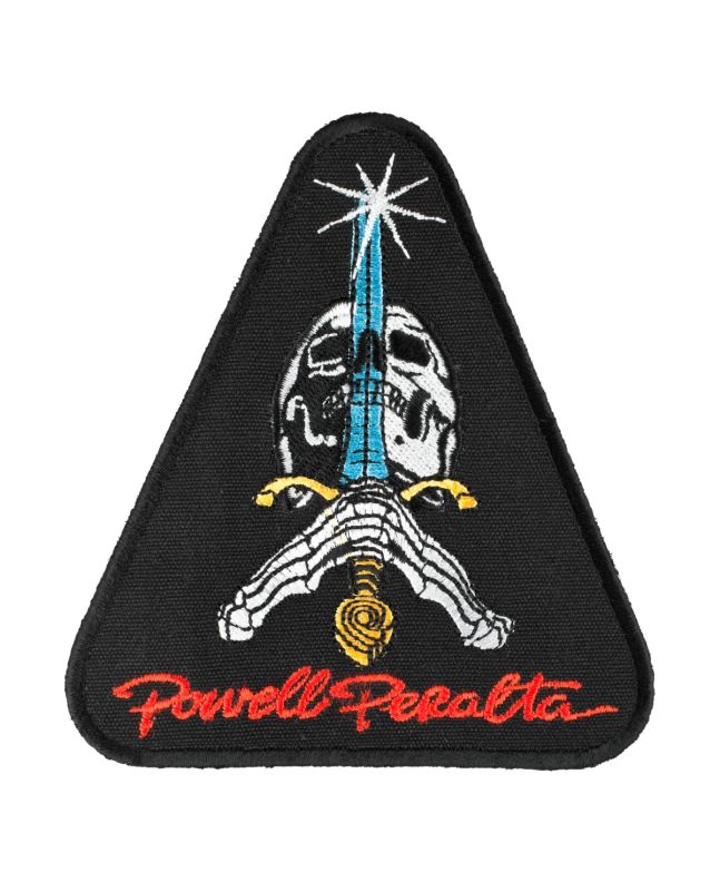 El parche Skull & Sword Patch 3.5" Negro de Powell Peralta presenta forma triangular y el icónico logo "Skull & Sword" bordado. Este gráfico fue concebido en 1979 por Ray Rodriguez e ilustrado por VCJ (Vernon Courtland Johnson) con la dirección artística de George Powell.