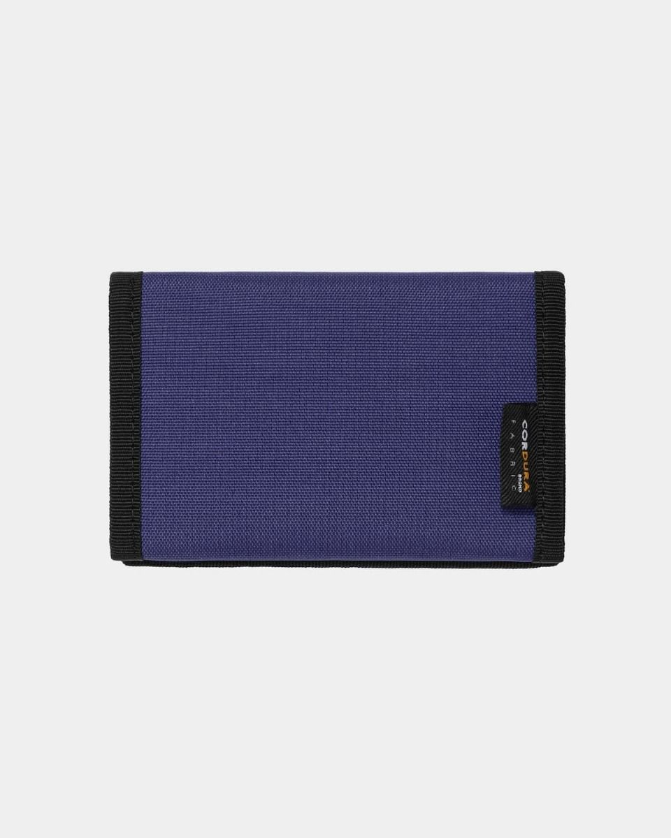 La cartera para hombre Payton en color morado con el logo bordado en azul (Razzmic/Icy Water) de Carhartt WIP está fabricada con 100% poliéster Cordura© (270 g/sqm) de gran resistencia e impermeable.