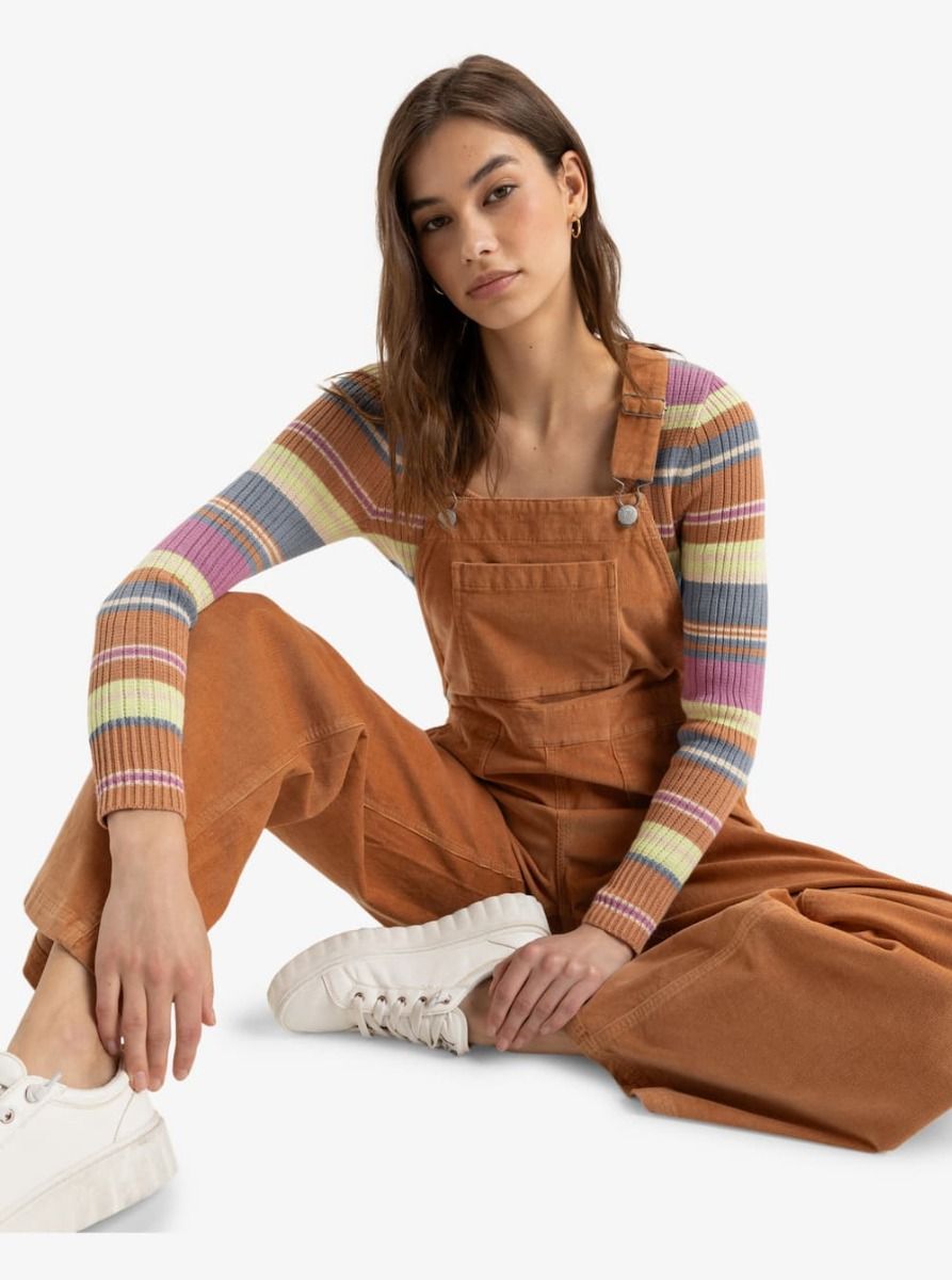Peto de pana Roxy Trailblazer Overall en color camel para mujer