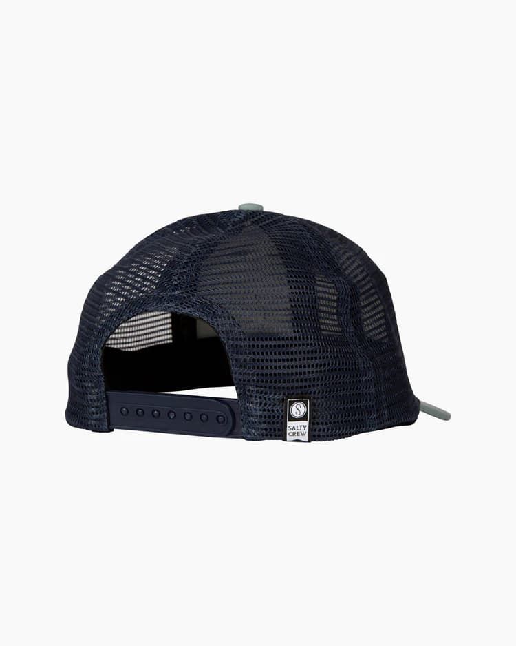 La gorra de malla para niño Pinnacle Retro Trucker de Salty Crew está disponible en verde con azul azul marino (Sage-Navy).