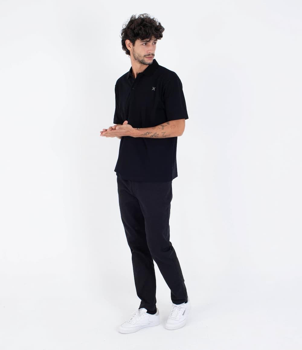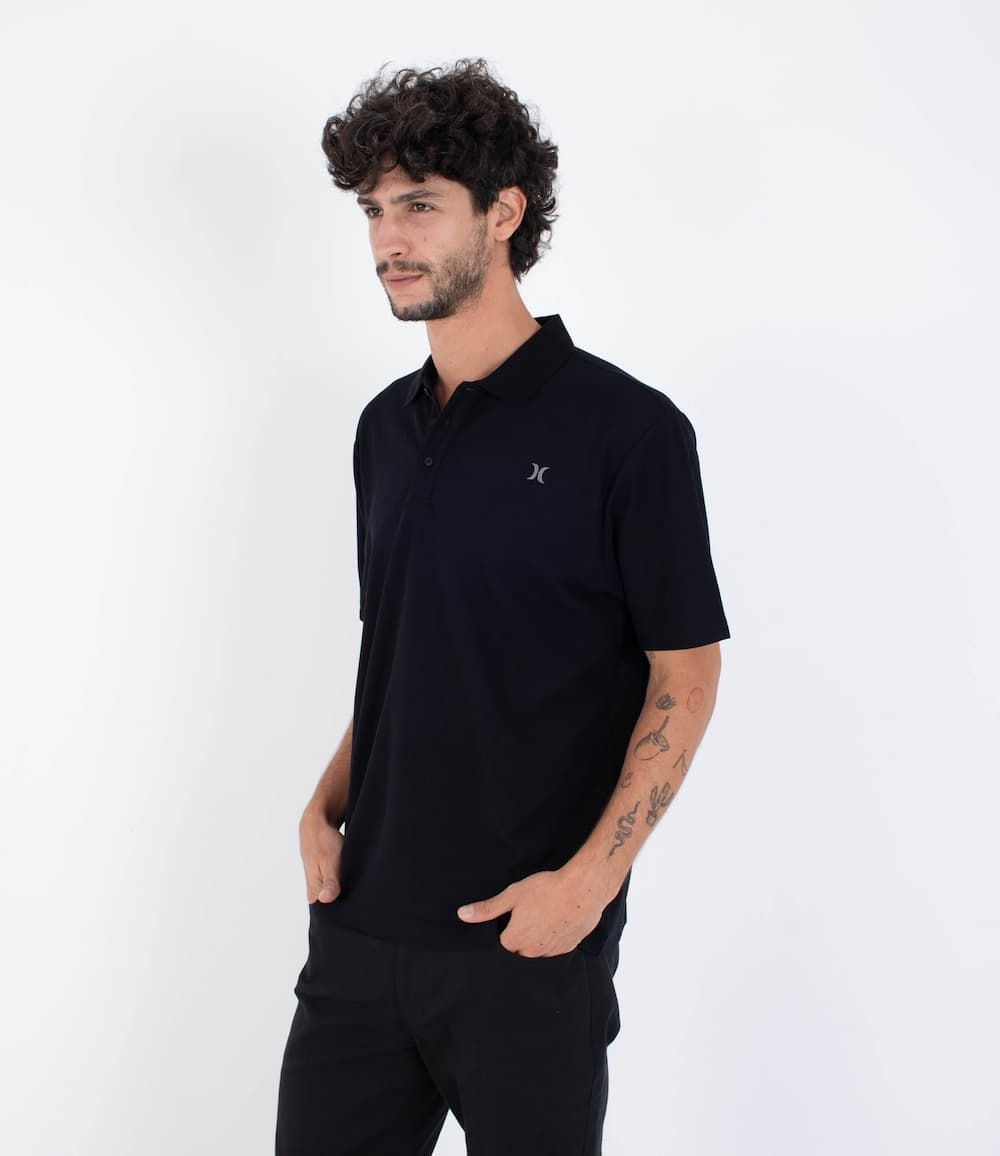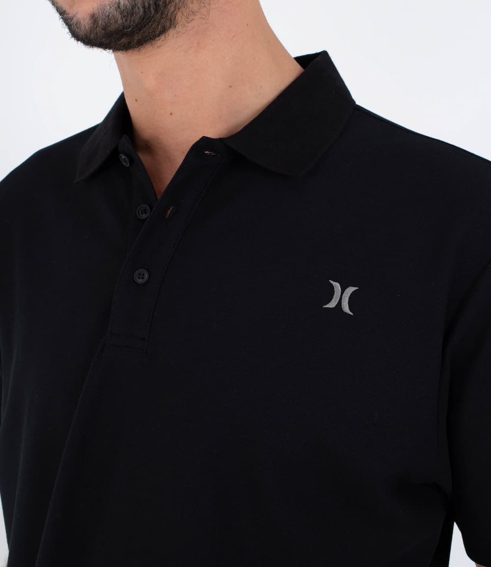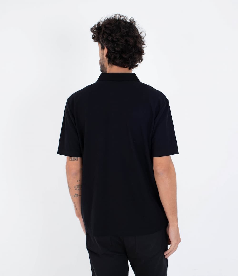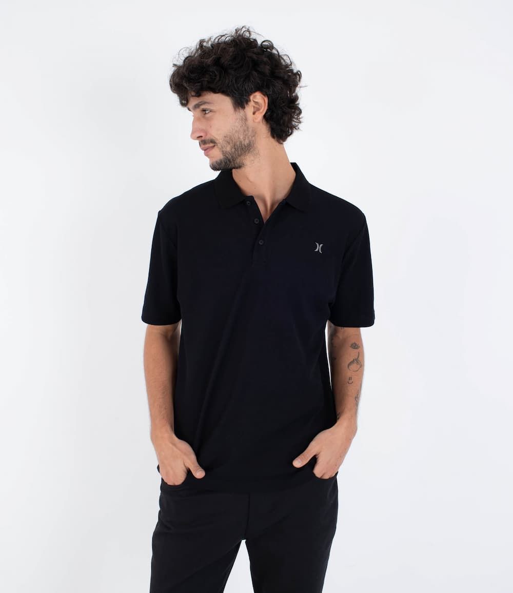 Polo de manga corta Hurley en negro con logo bordado, versátil y cómodo para el día a día.