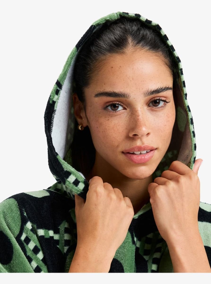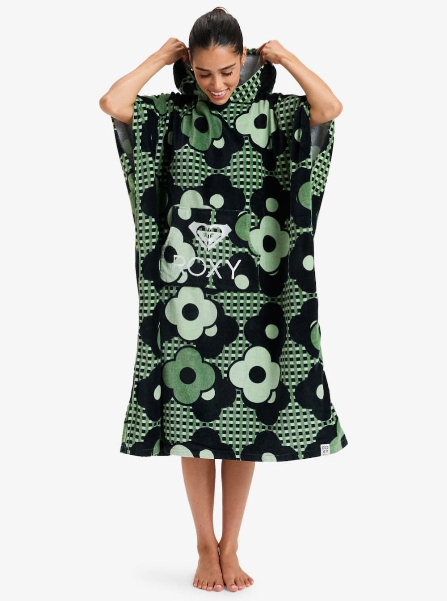 Poncho toalla Roxy de algodón con capucha y bolsillo canguro para cambiarte y secarte con comodidad tras el baño.