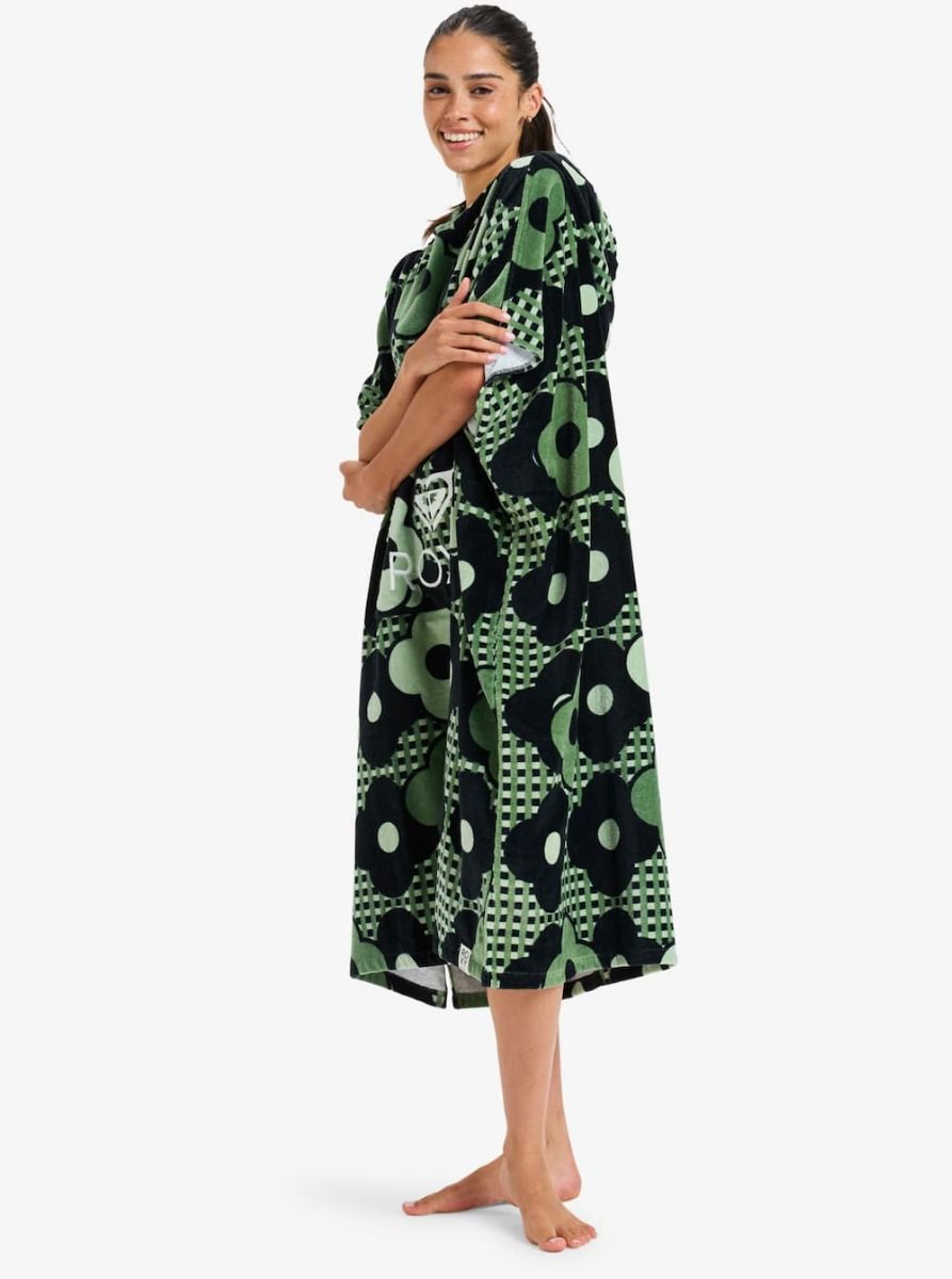 Toalla Poncho Roxy Stay Magical Printed en color Antracita con estampado verde floral para mujer