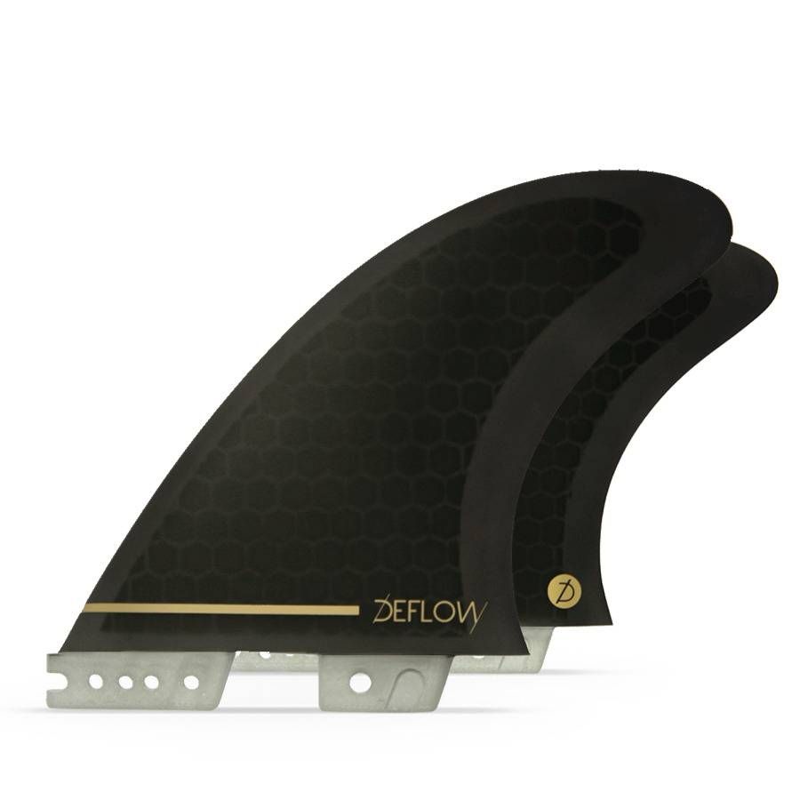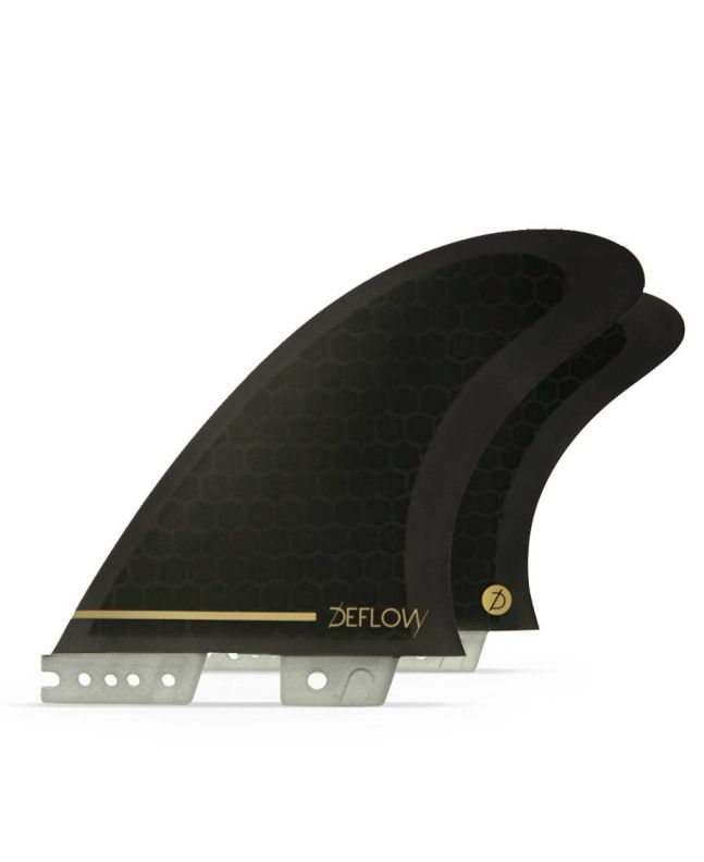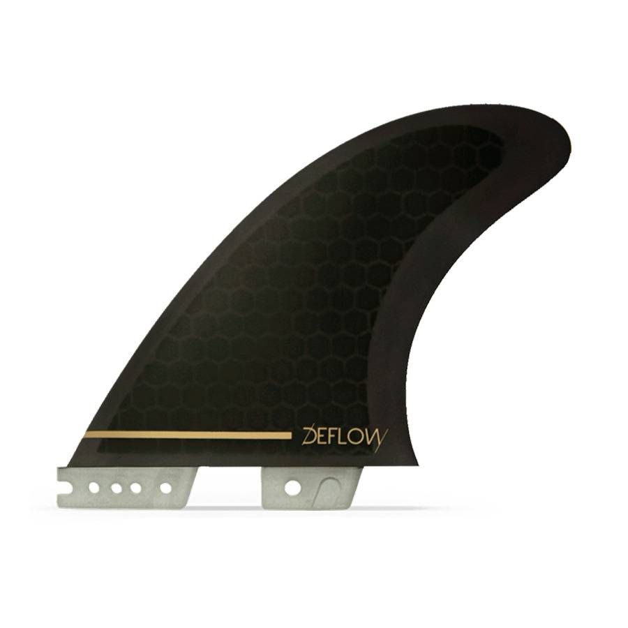 Las quillas para tabla de surf Bee Large FCS Thruster Evo Tab tienen el logo de Deflow estampado.