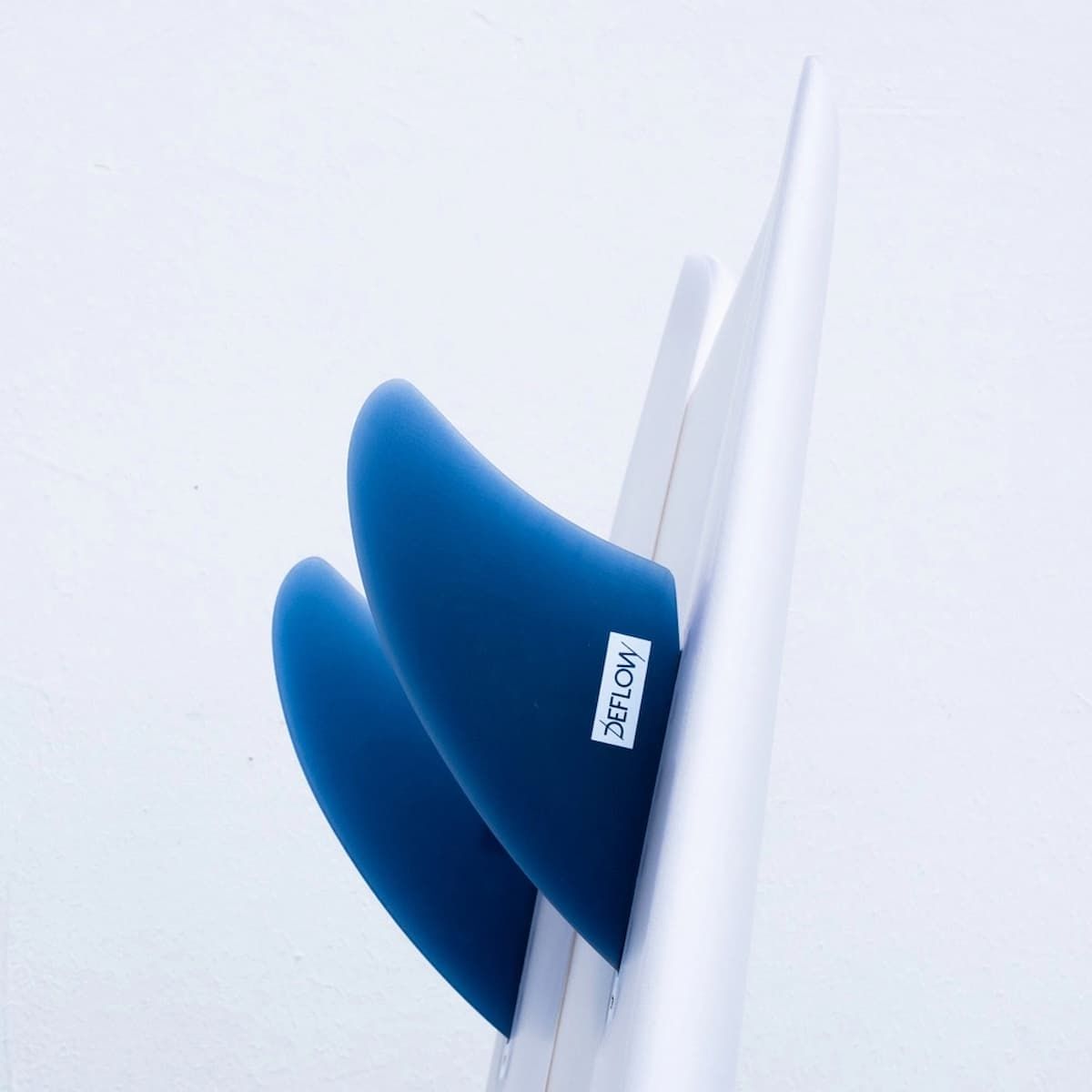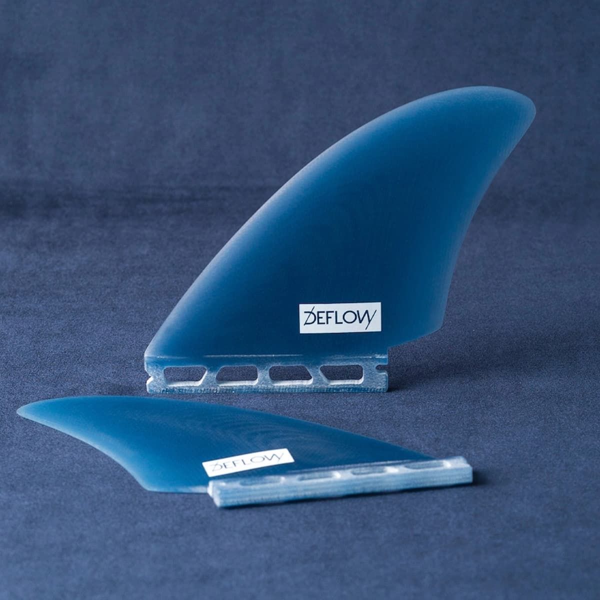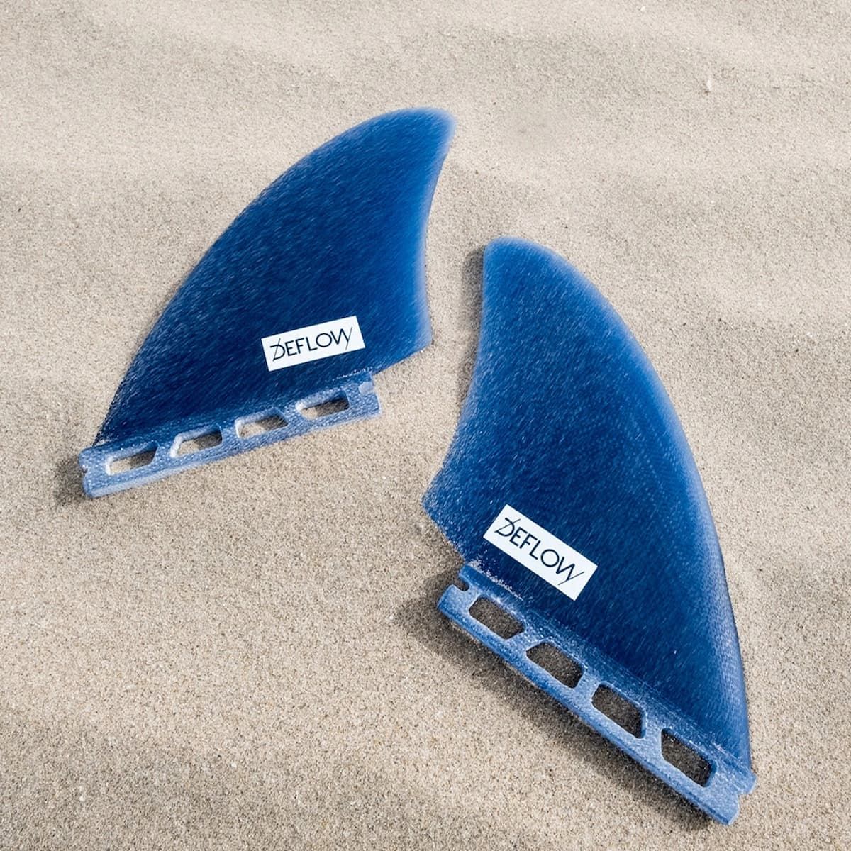 La quillas de surf Twin Fin Mid Futures en tono azul (Blue) de Deflow están fabricadas con fibra de vidrio.