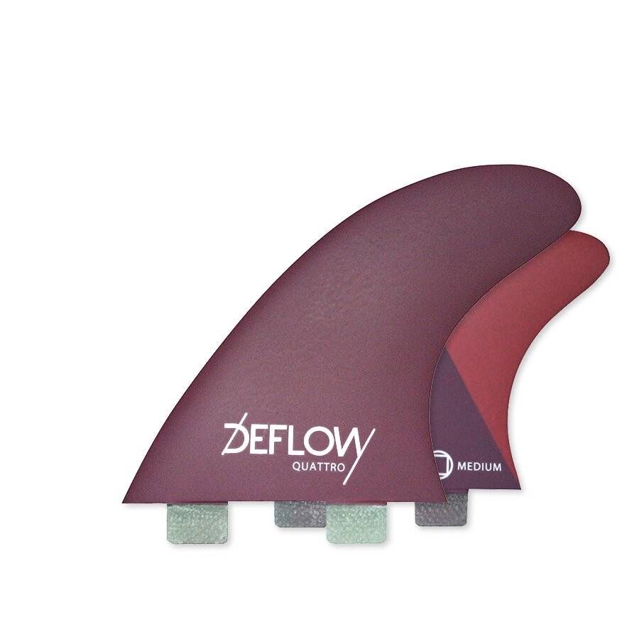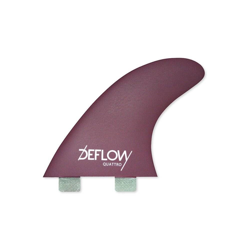 Las quillas para tabla de surf Supra Cuatro Futures Quad Double Tab tienen el logo de Deflow estampado.