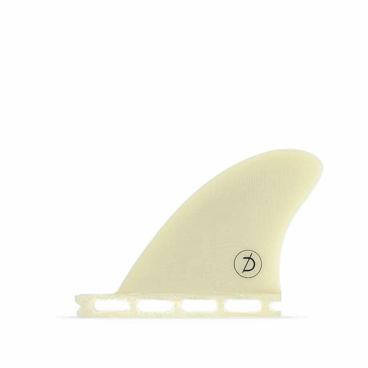 La quillas de surf Twin + 1 Futures en tono crema (Cream) de Deflow están fabricadas con 100% fibra de vidrio.