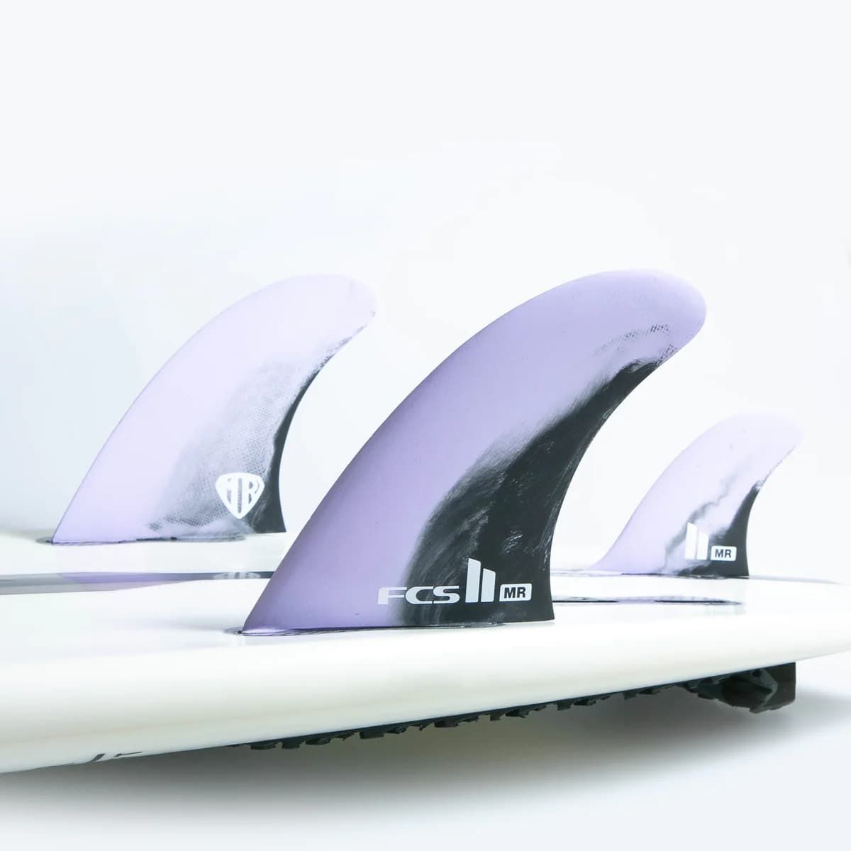 Quillas para tabla de surf FCS II Mark Richards Performance Core Tri Fins en color lavanda y negro X-Large