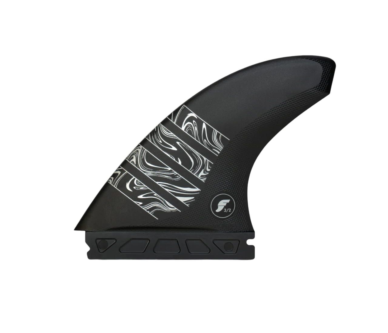 Esta quilla presenta también punta de cimitara. Desarrollada originalmente en 2006, la punta Scimitar cuenta con un borde aplanado en el extremo posterior de la aleta y aprieta el arco de giro al reducir la longitud de la plantilla. Esto complementa el diseño de elevación y velocidad del foil 3/2, mejorando la sensación de liberación en los giros y maximizando las propiedades del foil en toda la plantilla de la quilla.