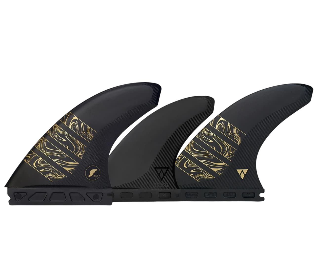 Set 5 quillas Futures Vector 3/2 Alpha Carbon Gold Talla M: máximo control, velocidad y versatilidad en un diseño eco-responsable para todo tipo de condiciones.
