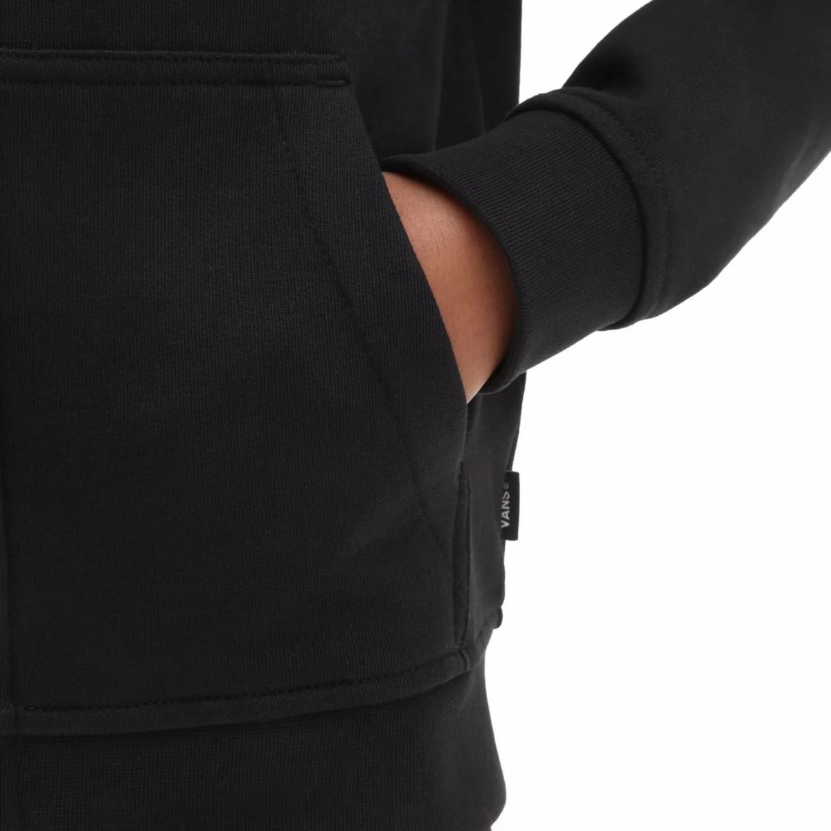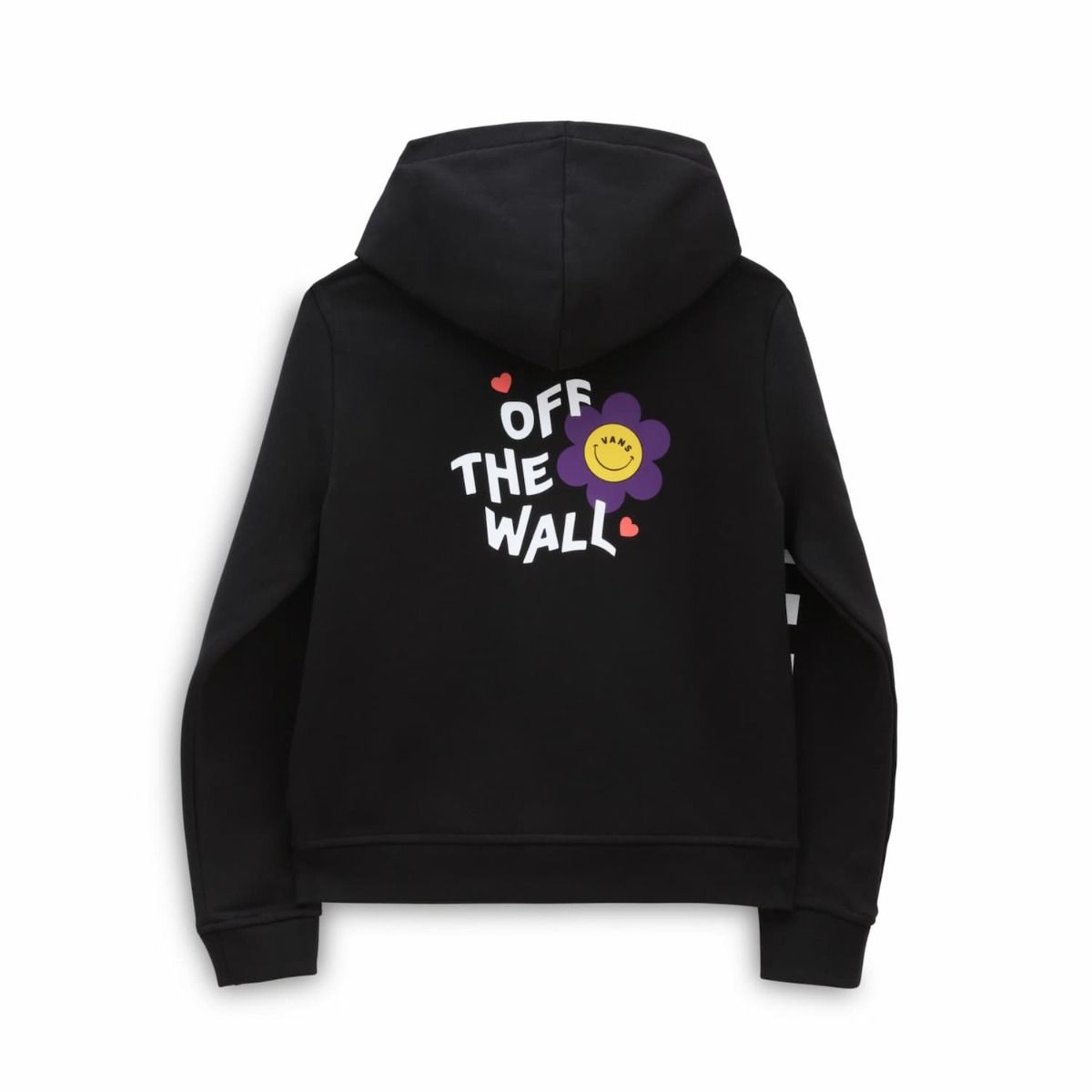 La sudadera con capucha y cremallera para niña Radically Happy negra tiene una etiqueta de garantía Vans® cosida en el cuello interior.
