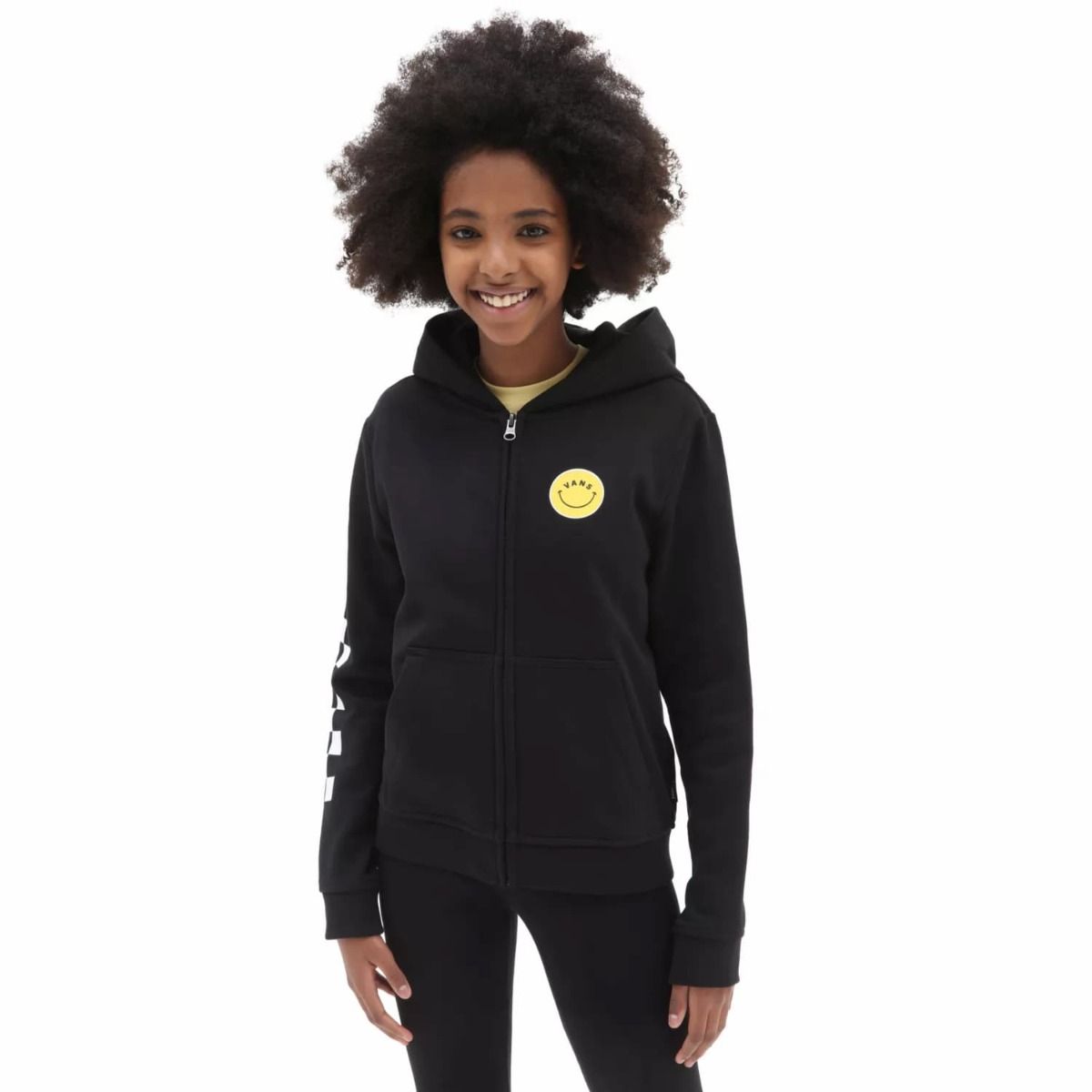La sudadera con capucha y cremallera para niñas de entre 8 y 14 años Radically Happy en negro (Black) de Vans ha sido confeccionada con 60% algodón y 40% poliéster.