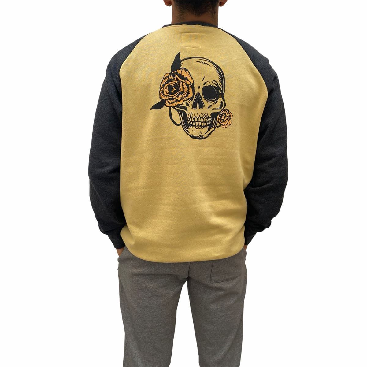 Este crew de ajuste clásico cuenta con cuello redondo, mangas raglán, dobladillo inferior y puños acanalados, suave forro interior cepillado, una rosa junto con la inscripción Mission Co. Surfboards serigrafiados en el lado izquierdo del pecho y un gráfico artístico de la calavera con la rosa de Mission impreso en la espalda.