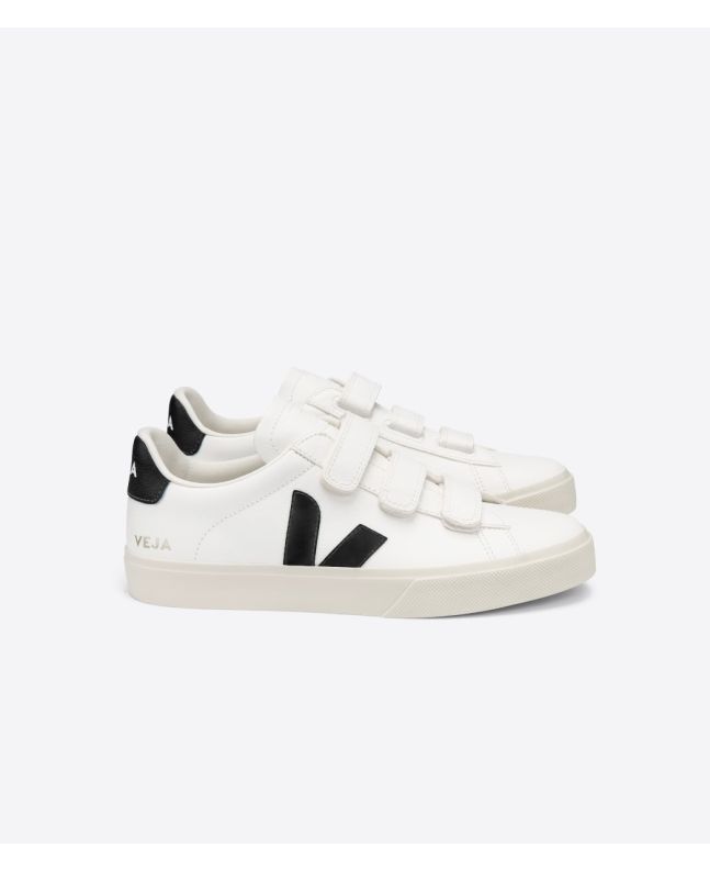 Zapatillas Veja Recife Chromefree blancas con detalles en negro y suela de goma blanca Unisex | Extra White Black