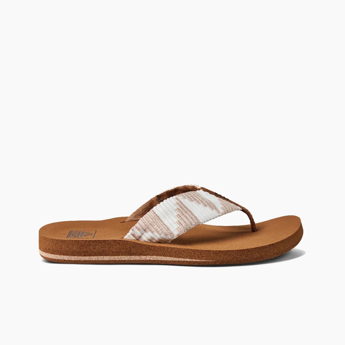 Las chanclas Spring Woven Sand para mujer tienen el logo en texto de Reef tejido en la tira del empeine.