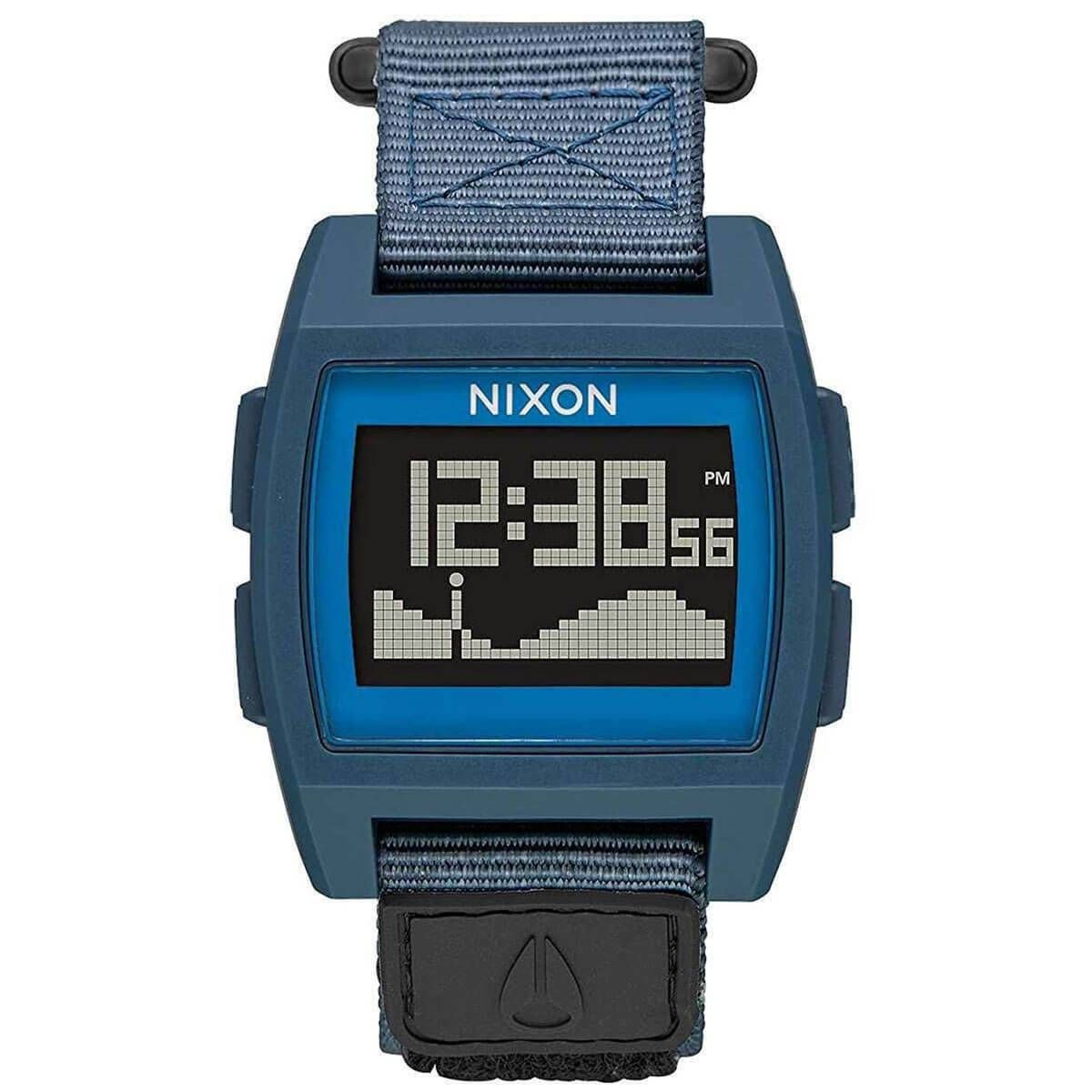 El reloj de mareas Nixon Base Tide Nylon A1169-307 Blue Strap en color azul cuenta con un módulo digital de diseño especial para la hora (12/24), el día/fecha (hasta 2099), mareas básicas, predicción de mareas, retroiluminación, cronógrafo y temporizador, todo totalmente personalizable.