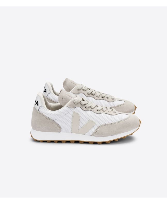 Zapatillas Veja Rio Branco Alveomesh blancas con detalles en beige y suela de goma blanca Unisex | White Pierre Natural