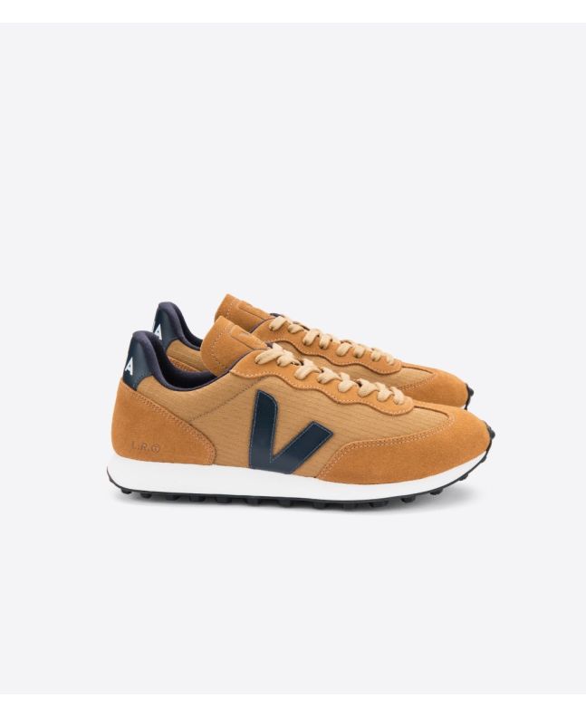 Zapatillas Veja Rio Branco Ripstop marrones con detalles en azul marino y suela de goma blanca Unisex | Tent Nautico