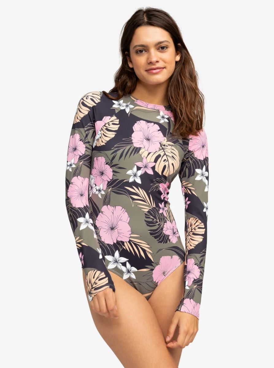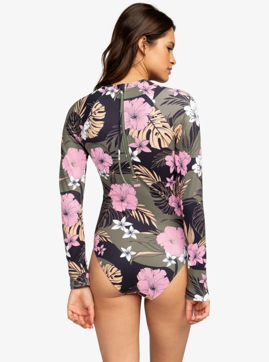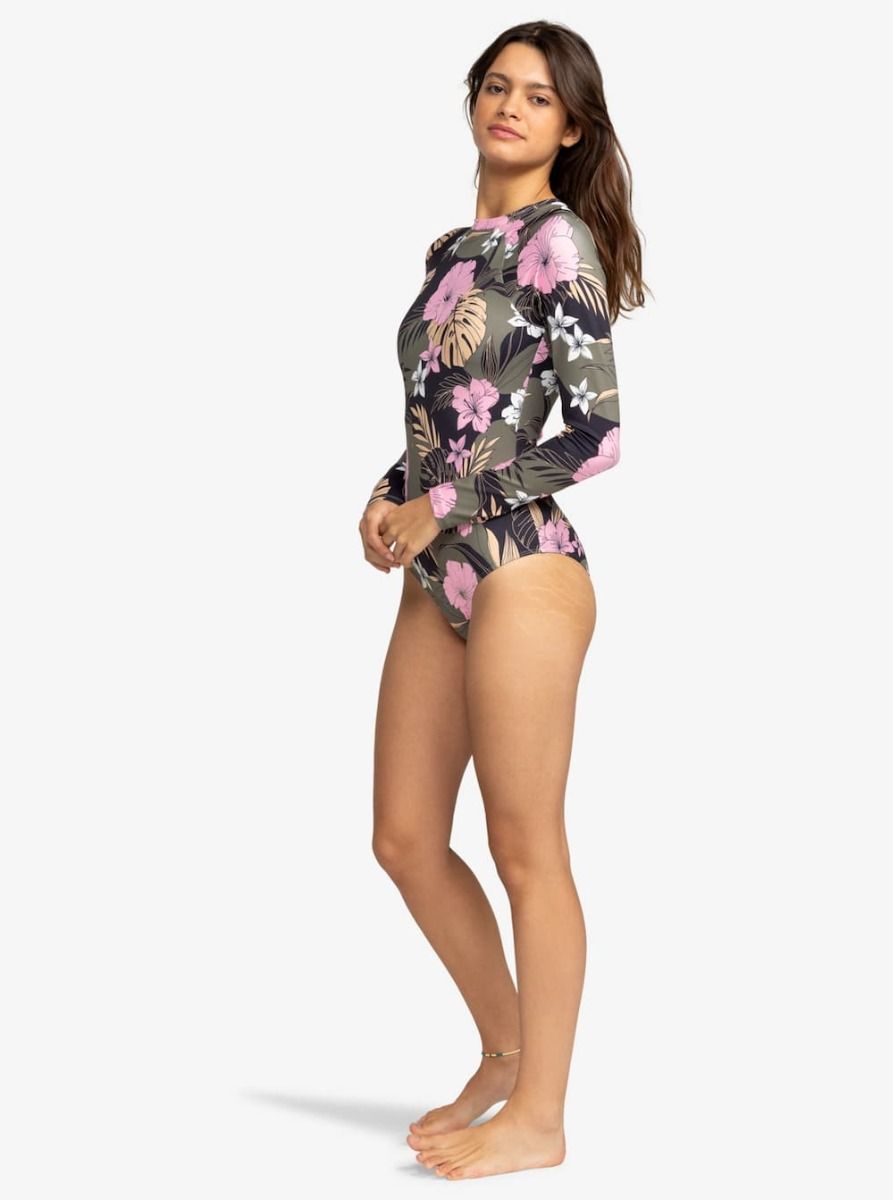 Licra de Surf con manga larga Roxy Pro The Overhead en color Antracita Floral para mujer