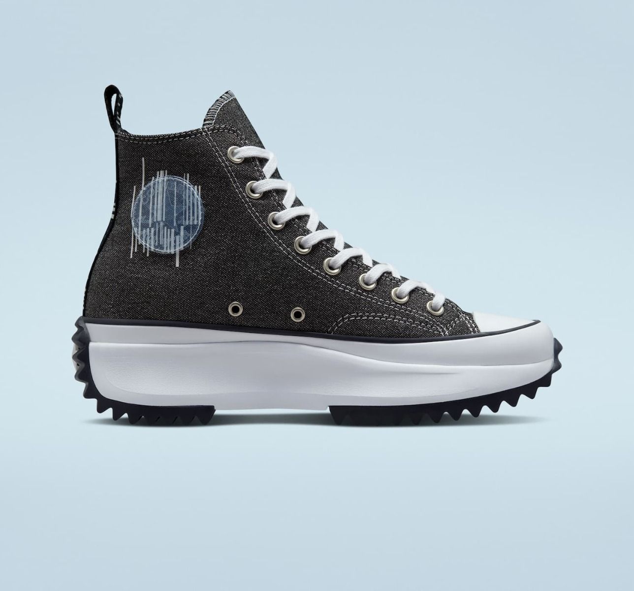 A pesar del grosor de su suela, las Run Star Hike Platform Translucent Barcode negras son unas zapas muy flexibles y transpirables, gracias a su tejido de lona y los dos agujeros con borde metálico en la parte inferior característicos de las All Star.