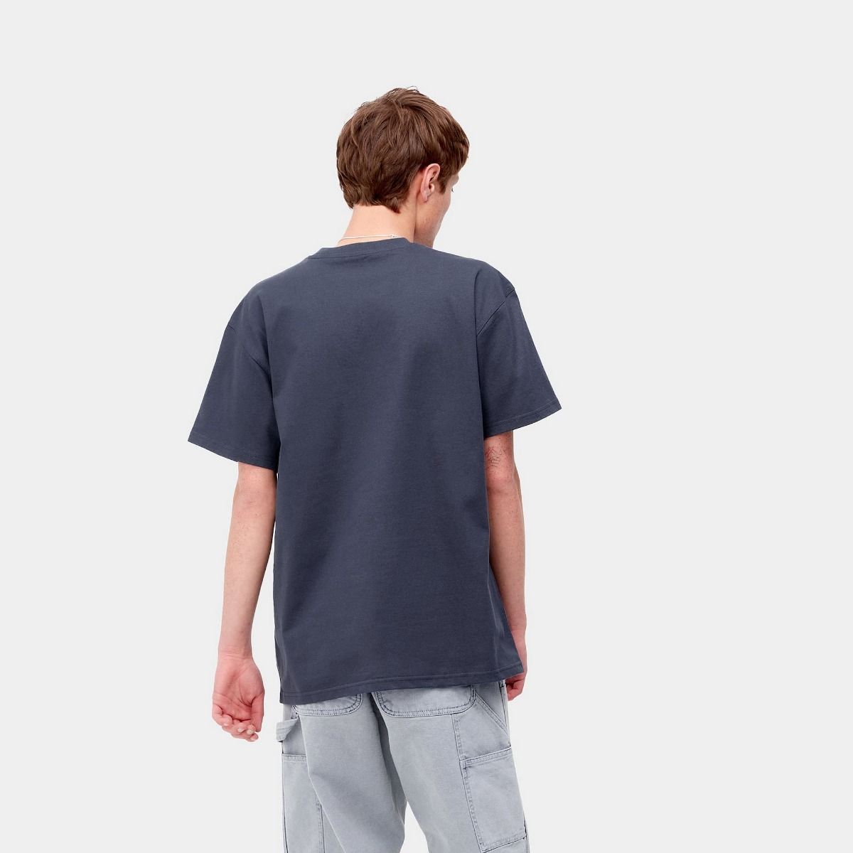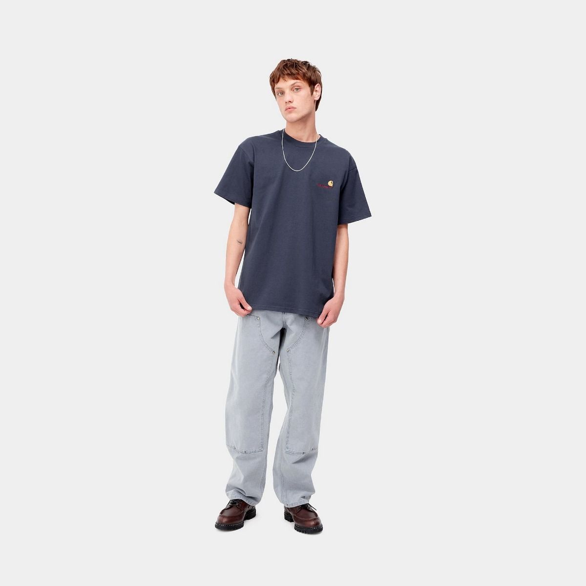 La camiseta de manga corta para hombre American Script azul tiene el sello de garantía Carhartt Work In Progress en el interior.