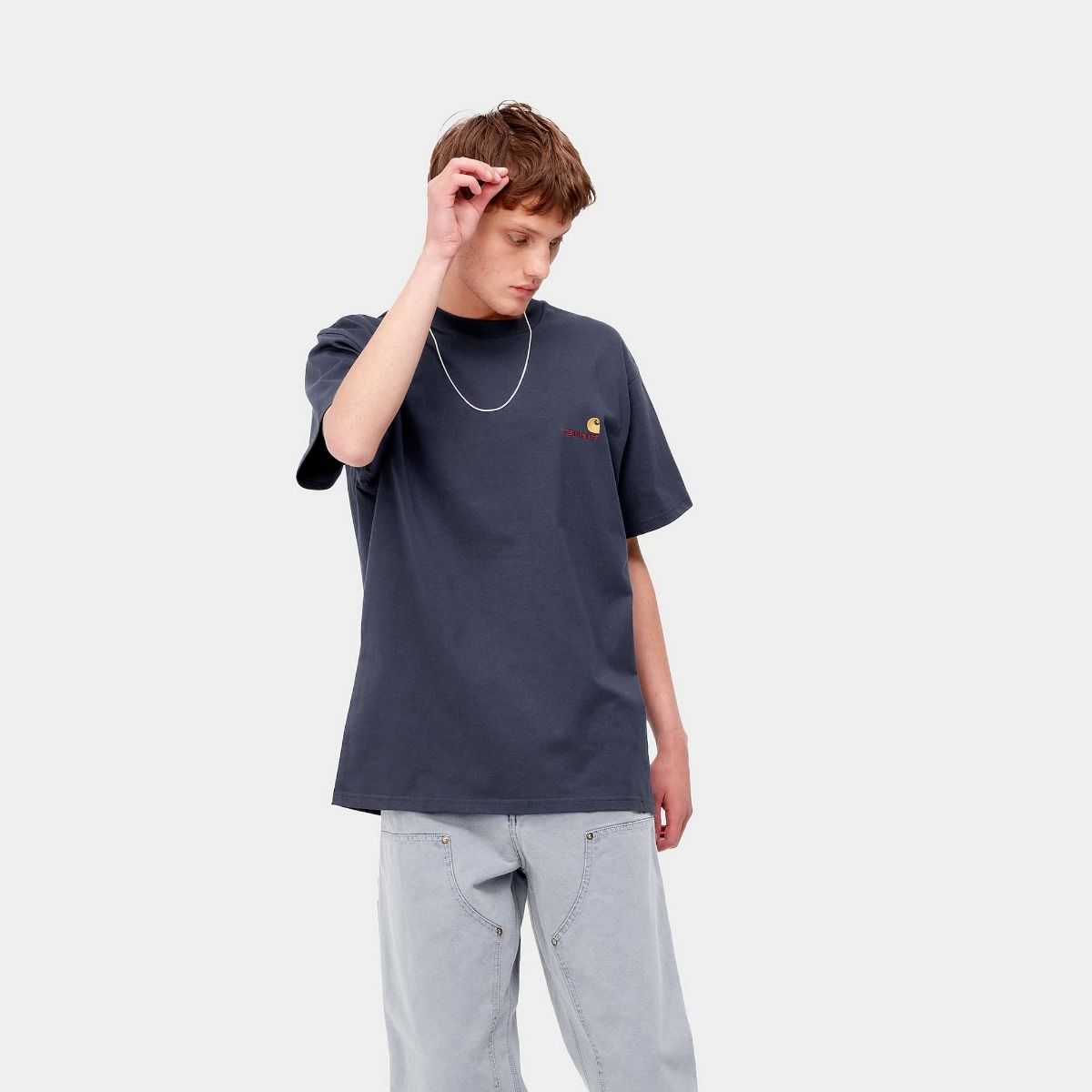 Camiseta de manga corta Carhartt WIP American Script en color azul para hombre