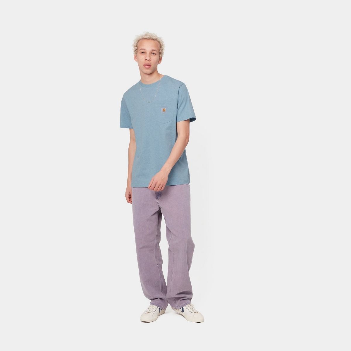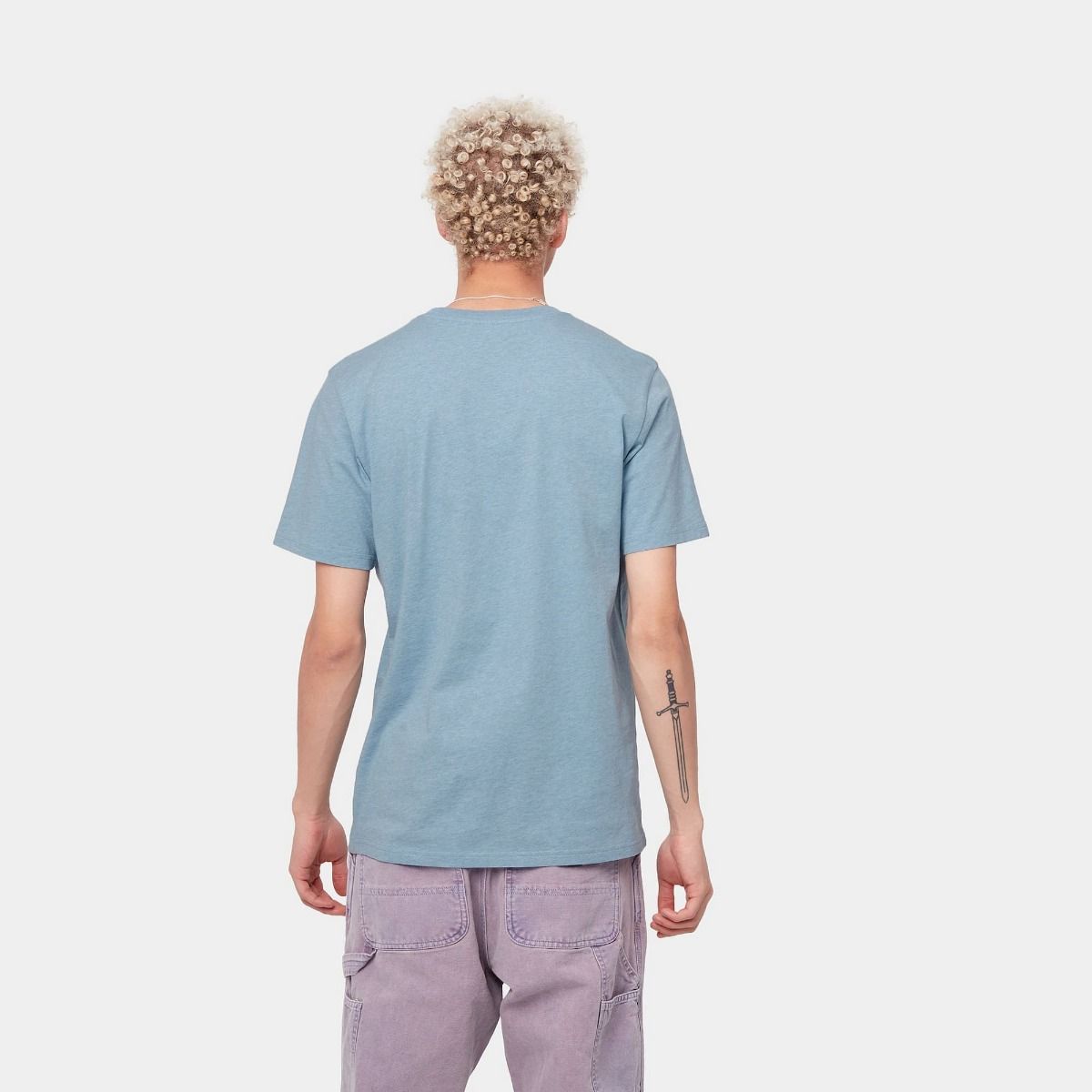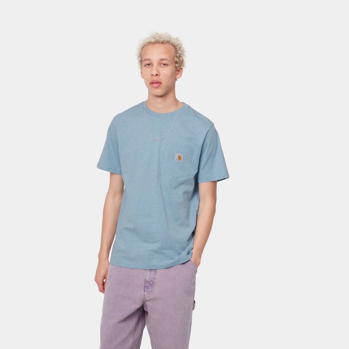 La camiseta Pocket T-Shirt S/S de Carhartt Work In Progress está disponible en azul (Frosted Blue Heather).