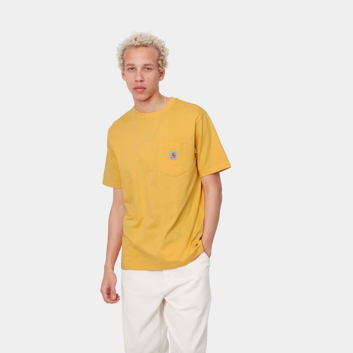 La camiseta con bolsillo en el pecho para hombre Pocket T-Shirt S/S en amarillo de Carhartt WIP ha sido confeccionada con 100% tejido punto jersey de algodón sencillo.