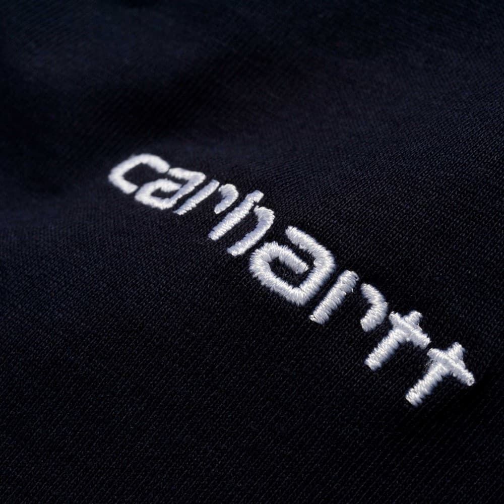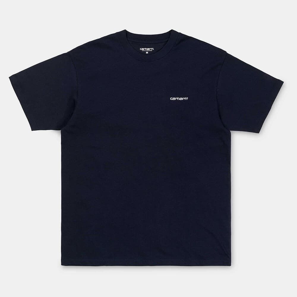 La camiseta de manga corta Script Embroidery azul marino para hombre tiene el sello de garantía Carhartt WIP en el interior.